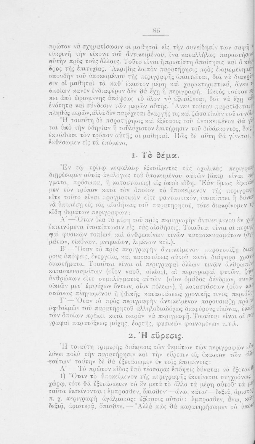 Παιδαγωγικό βοήθημα Νέων Ελληνικών Γυμνασίου που εστιάζει στην οριοθέτηση, δομή και ανάπτυξη ενός θέματος, το οποίο, με τη σειρά του, υποδιαιρείται σε ιστορικό και λογικό/φιλοσοφικό. Περιέχει υποδειγματικές διδασκαλίες εκθέσεων.