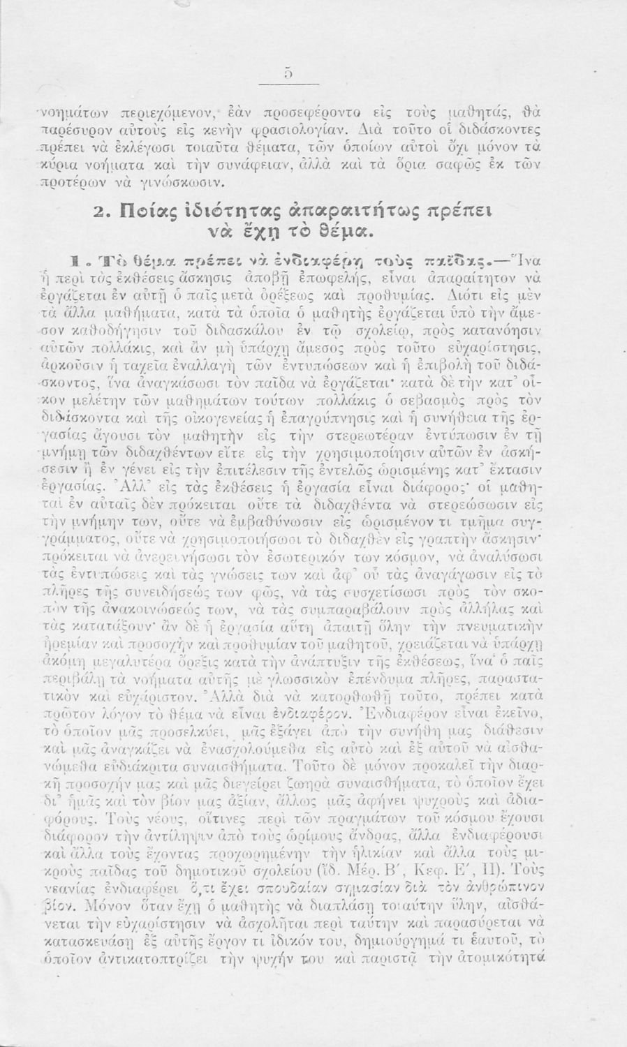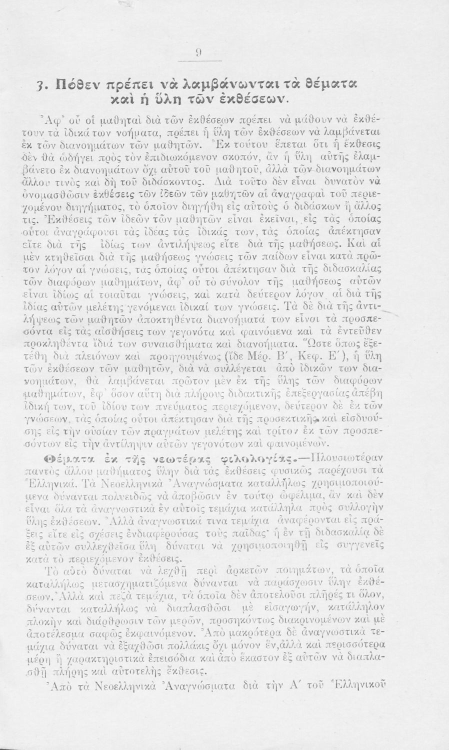 LDR 01360 2200193 4500 035 ## _a05-00140 040 ## _aΕργαστήρι Ιστορίας Ν.Ε. Εκπαίδευσης, Πανεπιστήμιο Ιωαννίνων 041 ## _ael 100 ## _aΠαύλος Α. Βαλάκης 110 ## _a140 245 0# _aΗ Διδασκαλία των Εκθέσεων εις τα Δημοτικά, Ελληνικά Σχολεία, Γυμνάσια και παντός είδους ομοβάθμια προς αυτά σχολεία, Τόμος Β΄, Μέρος Γ΄ Αι εκθέσεις εις τα σχολεία της Μέσης Εκπαιδεύσεως 260 ## _aΑθήνα _bΙωάννης Δ. Κολλάρος _c1922 300 ## _a276 520 ## _aΠαιδαγωγικό βοήθημα Νέων Ελληνικών Γυμνασίου που εστιάζει στην οριοθέτηση, δομή και ανάπτυξη ενός θέματος, το οποίο, με τη σειρά του, υποδιαιρείται σε ιστορικό και λογικό/φιλοσοφικό. Περιέχει υποδειγματικές διδασκαλίες εκθέσεων. 521 ## _aΓυμνάσιο 522 ## _aΕλλάδα 546 ## _aΚαθαρεύουσα 563 ## _aΜαλακό Εξώφυλλο 650 #4 _aΓνώμη _aΔιήγημα _aΠραγματεία