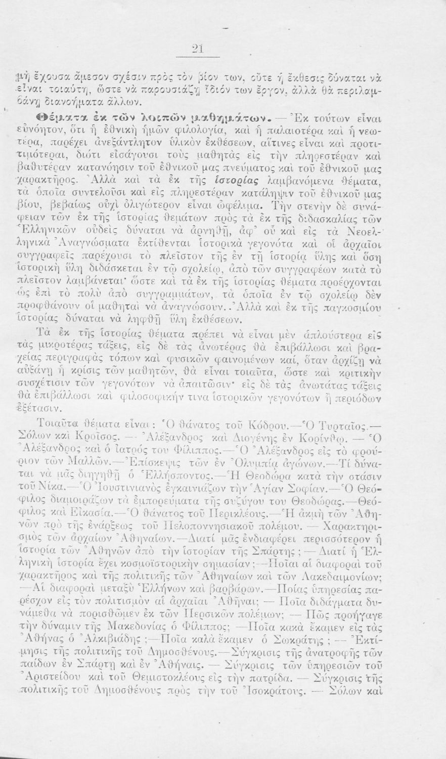 Βαθμίδα εκπαίδευσης: Δευτεροβάθμια Τάξη: Γυμνάσιο Μάθημα: Νέα Ελληνικά Γλώσσα: Καθαρεύουσα Παρουσίαση περιεχομένου: Παιδαγωγικό βοήθημα Νέων Ελληνικών Γυμνασίου που εστιάζει στην οριοθέτηση, δομή και ανάπτυξη ενός θέματος, το οποίο, με τη σειρά του, υποδιαιρείται σε ιστορικό και λογικό/φιλοσοφικό. Περιέχει υποδειγματικές διδασκαλίες εκθέσεων. |