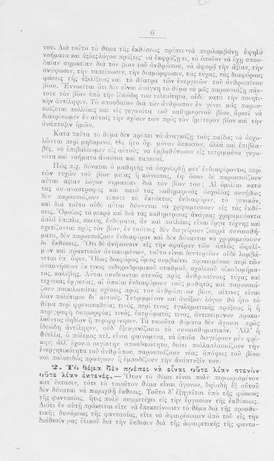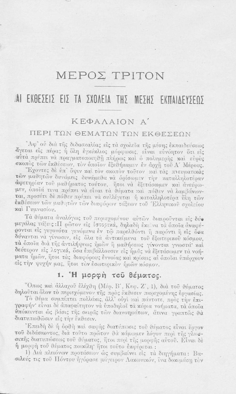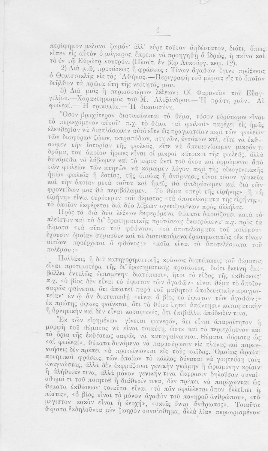 Παιδαγωγικό βοήθημα Νέων Ελληνικών Γυμνασίου που εστιάζει στην οριοθέτηση, δομή και ανάπτυξη ενός θέματος, το οποίο, με τη σειρά του, υποδιαιρείται σε ιστορικό και λογικό/φιλοσοφικό. Περιέχει υποδειγματικές διδασκαλίες εκθέσεων.