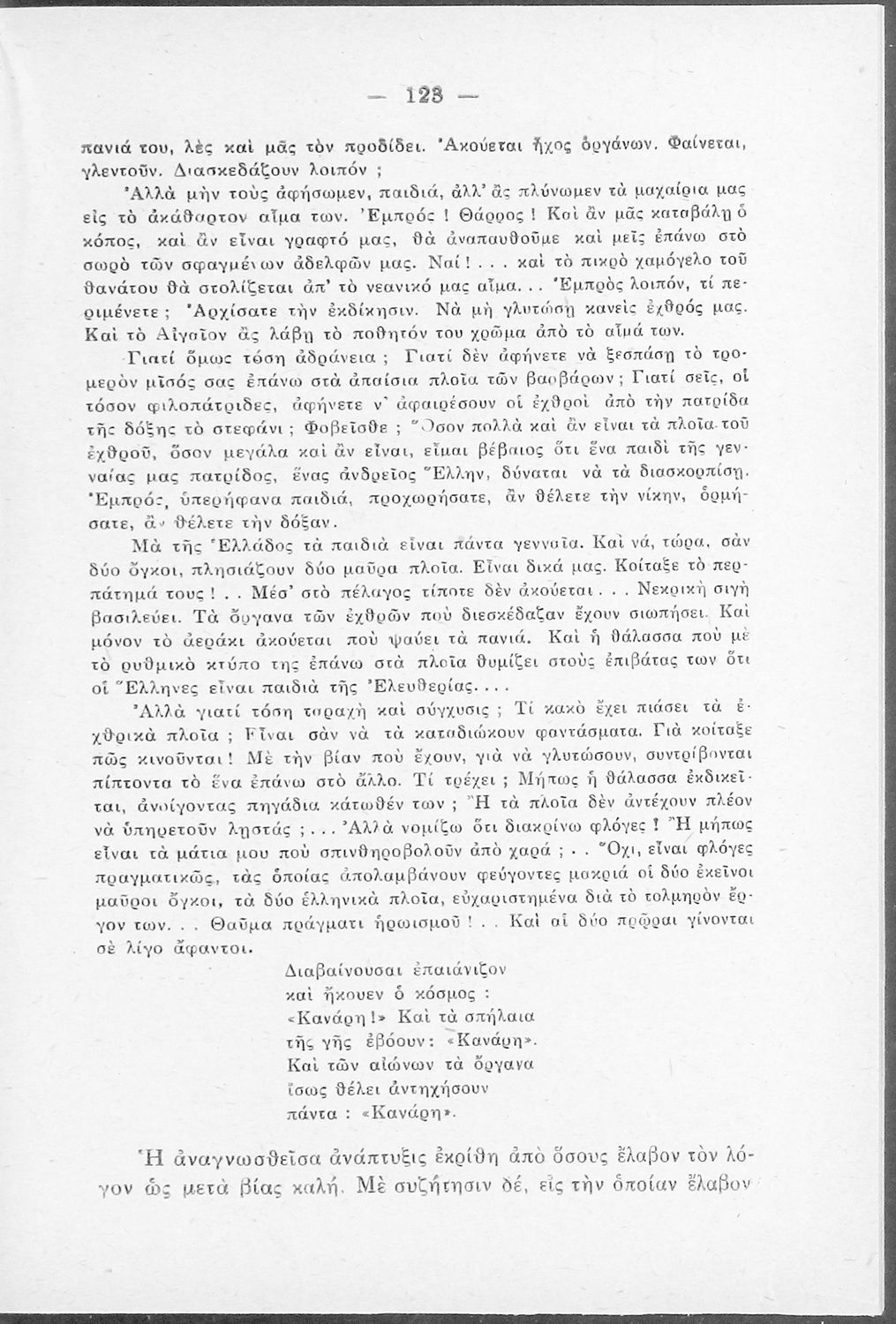 Σχολικό εγχειρίδιο Νεοελληνικών αναγνωσμάτων που περιλαμβάνει πεζά και ποιήματα Ελλήνων συγγραφέων με θέματα από την εθνική ζωή. Περιέχει και παράρτημα με βιογραφίες των συγγραφέων και λεξιλόγιο.