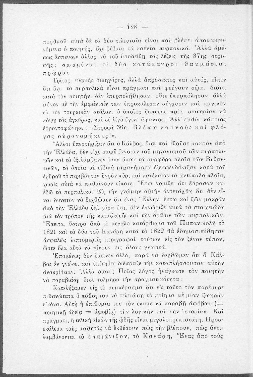 Παιδαγωγικό βοήθημα που περιλαμβάνει αναλύσεις των ποιημάτων του Κάλβου Ωδή στον Ιερόν Λόχον, Ο Φιλόπατρις, Τα Ηφαίστεια και Εις Δόξαν με σκοπό να αποκαταστήσει τη φήμη του ποιητή στους καθηγητές της Δευτεροβάθμιας Εκπαίδευσης.