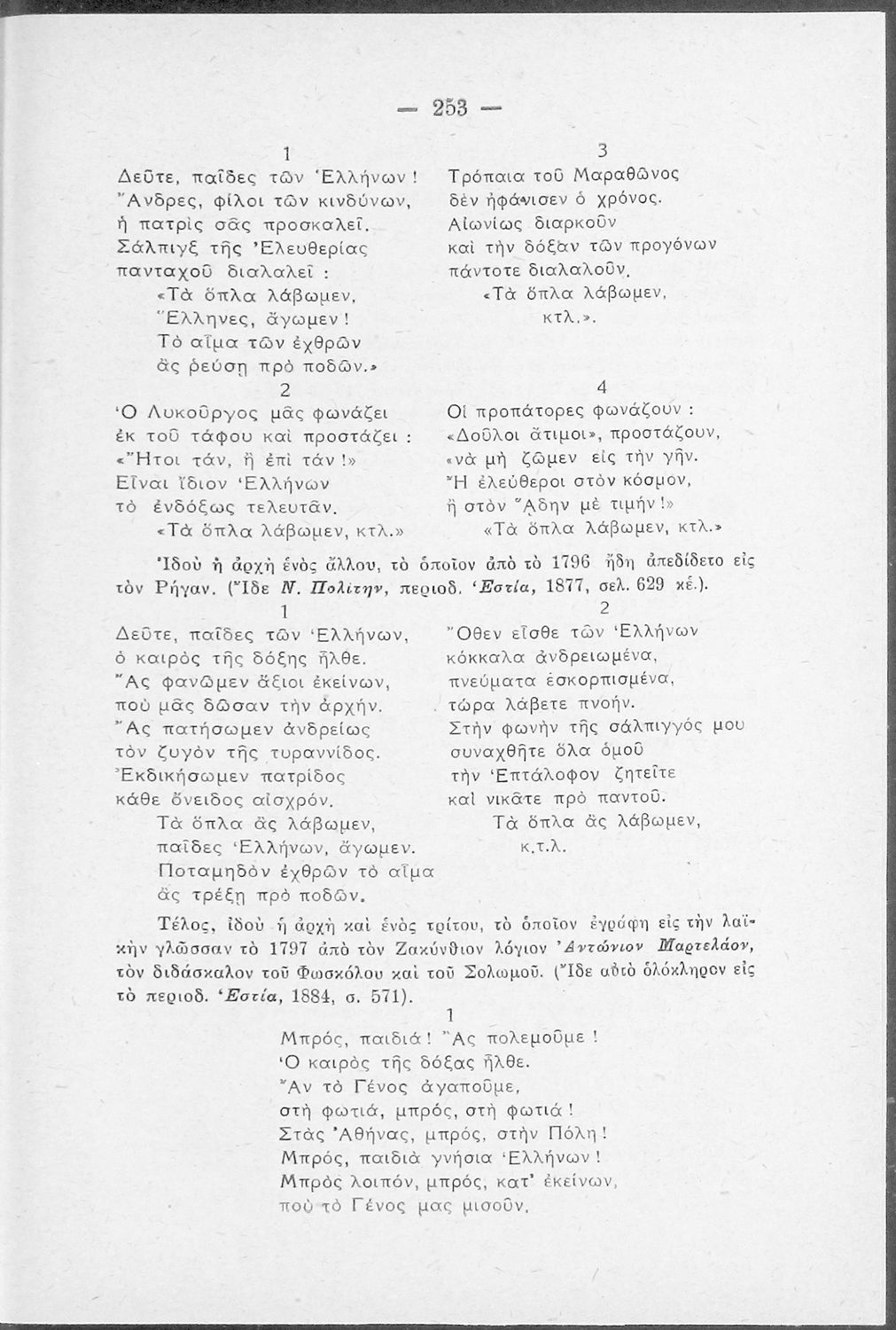 Σχολικό εγχειρίδιο Νεοελληνικών αναγνωσμάτων που περιλαμβάνει πεζά και ποιήματα Ελλήνων συγγραφέων με θέματα από την εθνική ζωή. Περιέχει και παράρτημα με βιογραφίες των συγγραφέων και λεξιλόγιο.