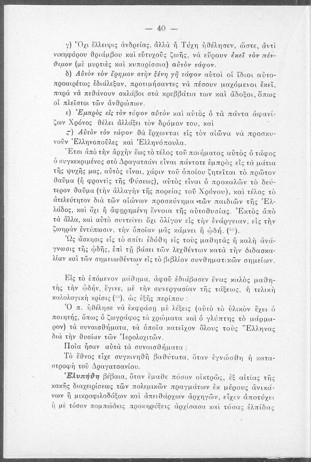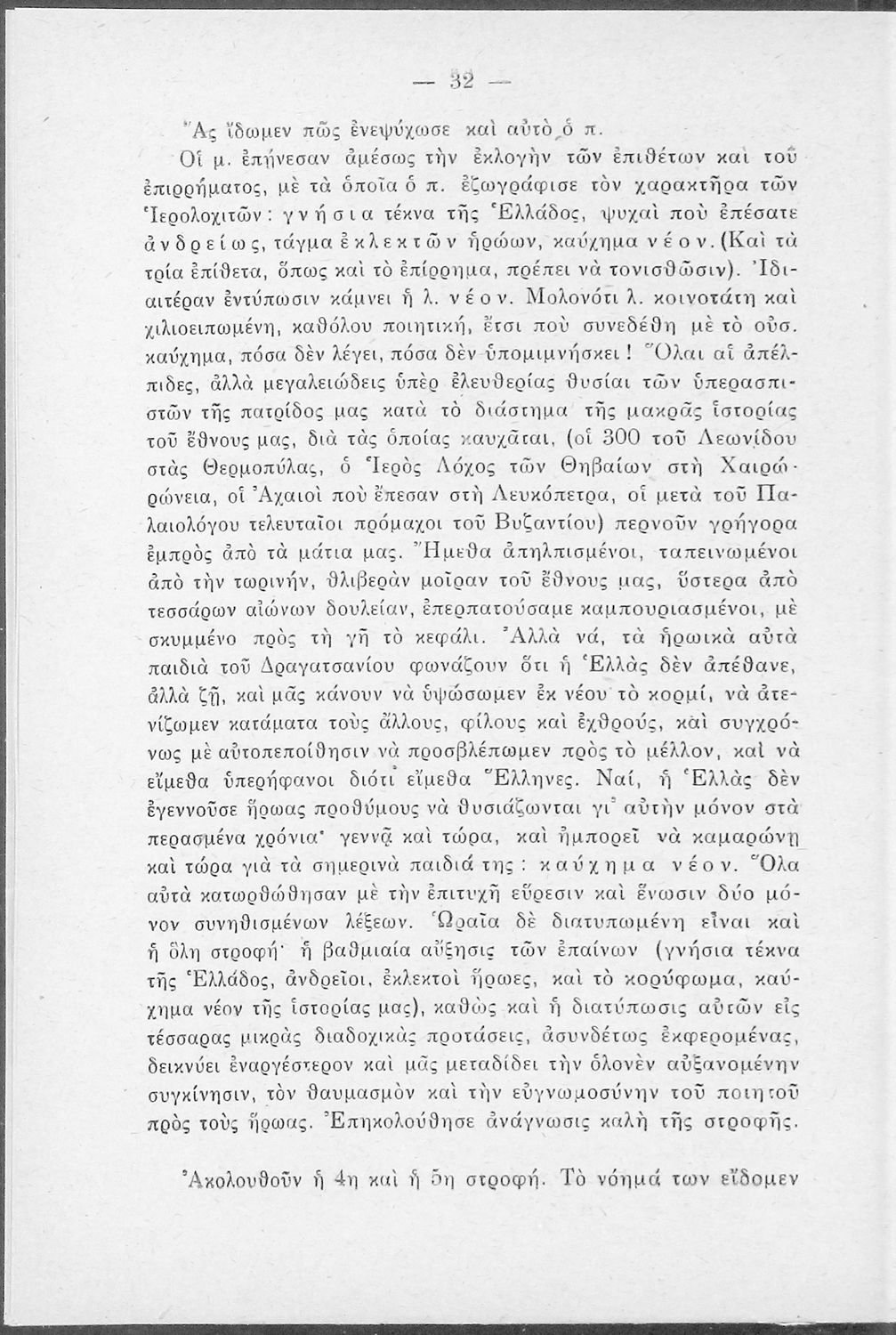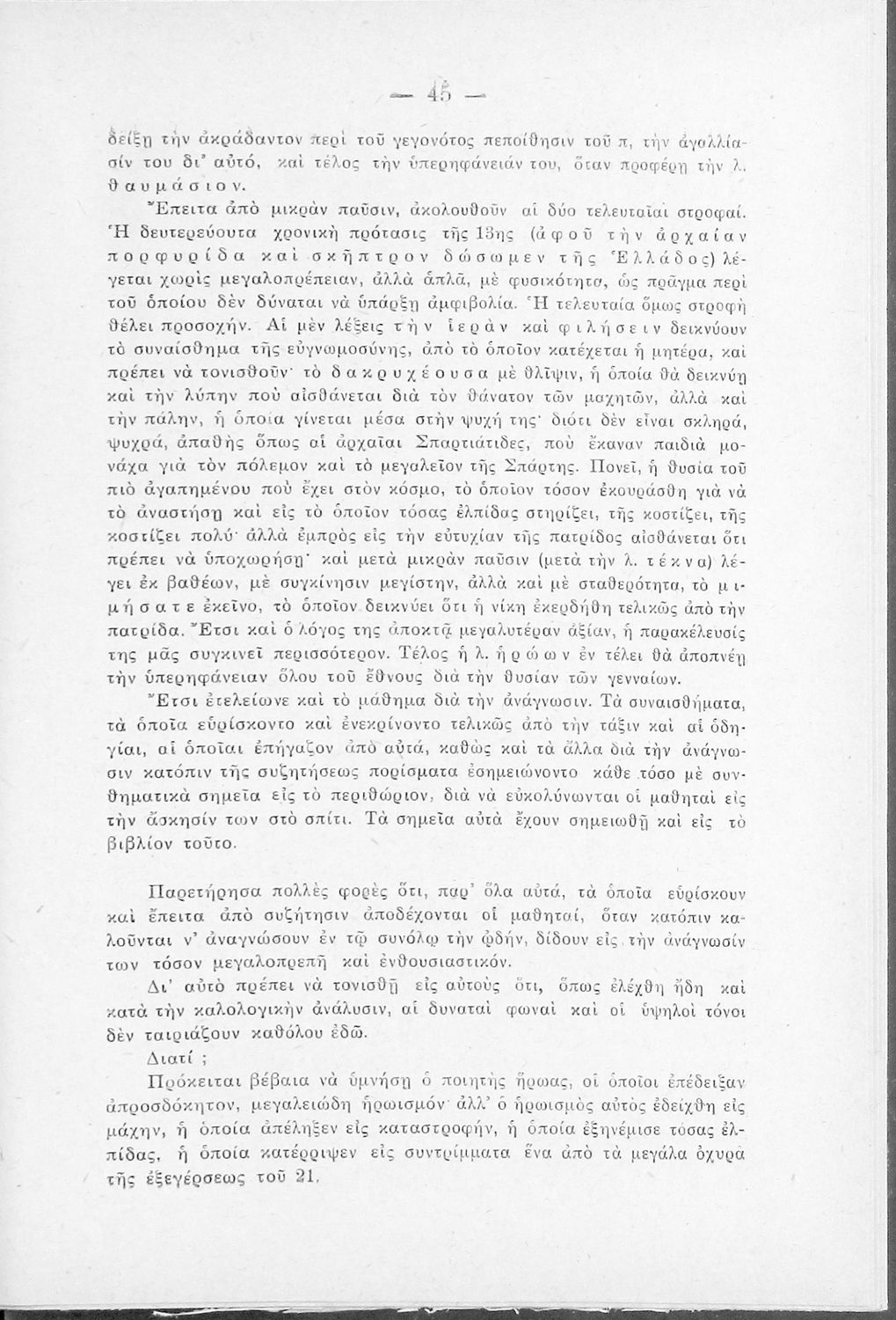 Σχολικό εγχειρίδιο Νεοελληνικών αναγνωσμάτων που περιλαμβάνει πεζά και ποιήματα Ελλήνων συγγραφέων με θέματα από την εθνική ζωή. Περιέχει και παράρτημα με βιογραφίες των συγγραφέων και λεξιλόγιο.