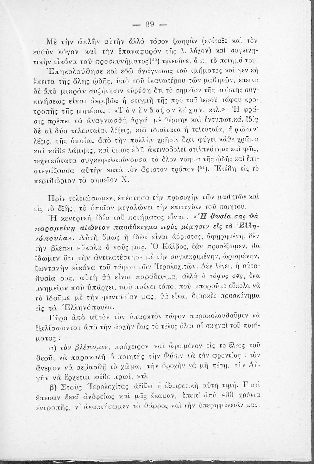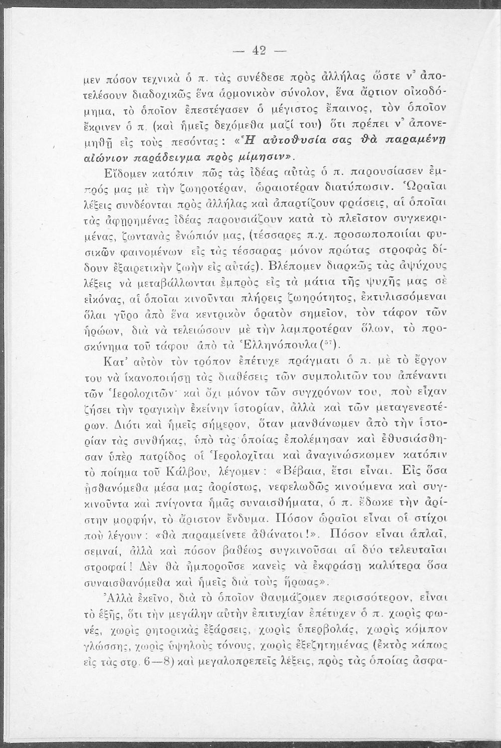 Παιδαγωγικό βοήθημα που περιλαμβάνει αναλύσεις των ποιημάτων του Κάλβου Ωδή στον Ιερόν Λόχον, Ο Φιλόπατρις, Τα Ηφαίστεια και Εις Δόξαν με σκοπό να αποκαταστήσει τη φήμη του ποιητή στους καθηγητές της Δευτεροβάθμιας Εκπαίδευσης.