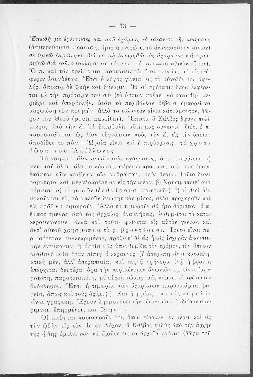 Παιδαγωγικό βοήθημα που περιλαμβάνει αναλύσεις των ποιημάτων του Κάλβου Ωδή στον Ιερόν Λόχον, Ο Φιλόπατρις, Τα Ηφαίστεια και Εις Δόξαν με σκοπό να αποκαταστήσει τη φήμη του ποιητή στους καθηγητές της Δευτεροβάθμιας Εκπαίδευσης.