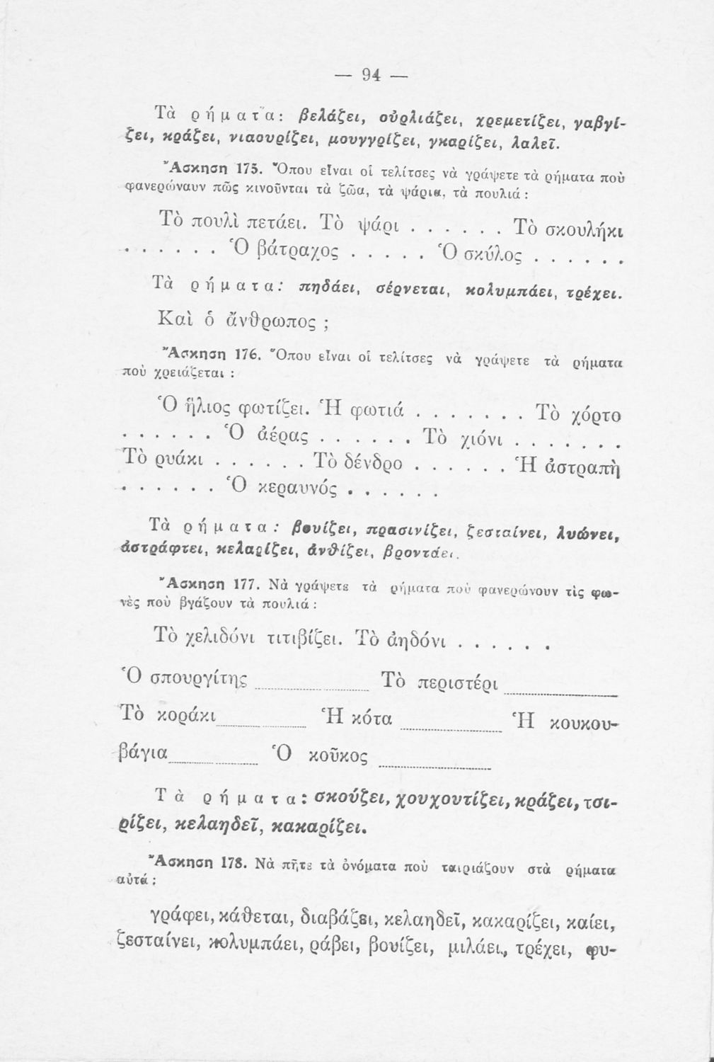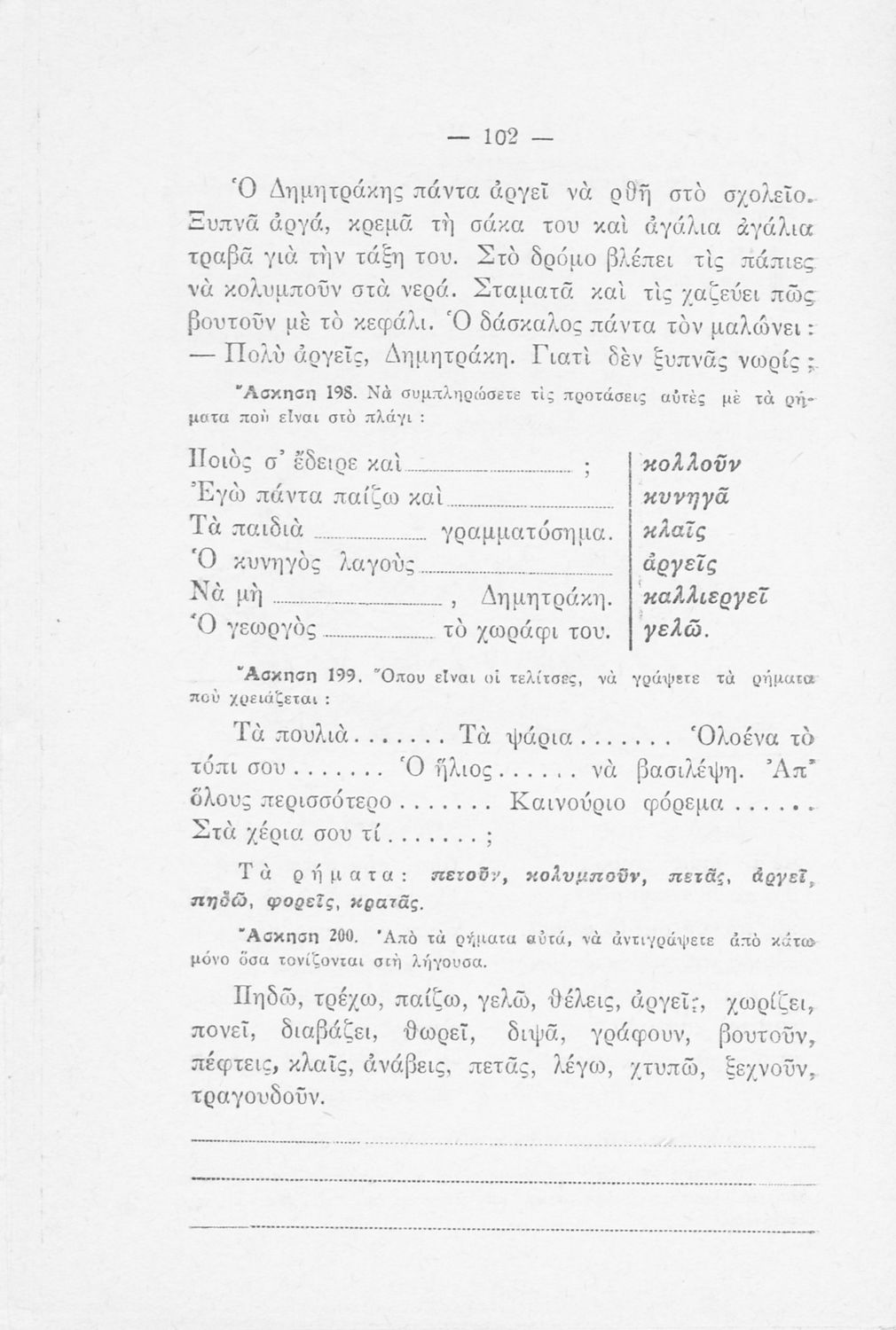 Παιδαγωγικό βοήθημα Γλώσσας Γ΄ και Δ΄ Δημοτικού που περιλαμβάνει λεκτικές και συνθετικές ασκήσεις.