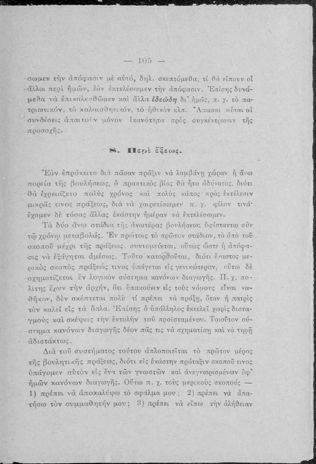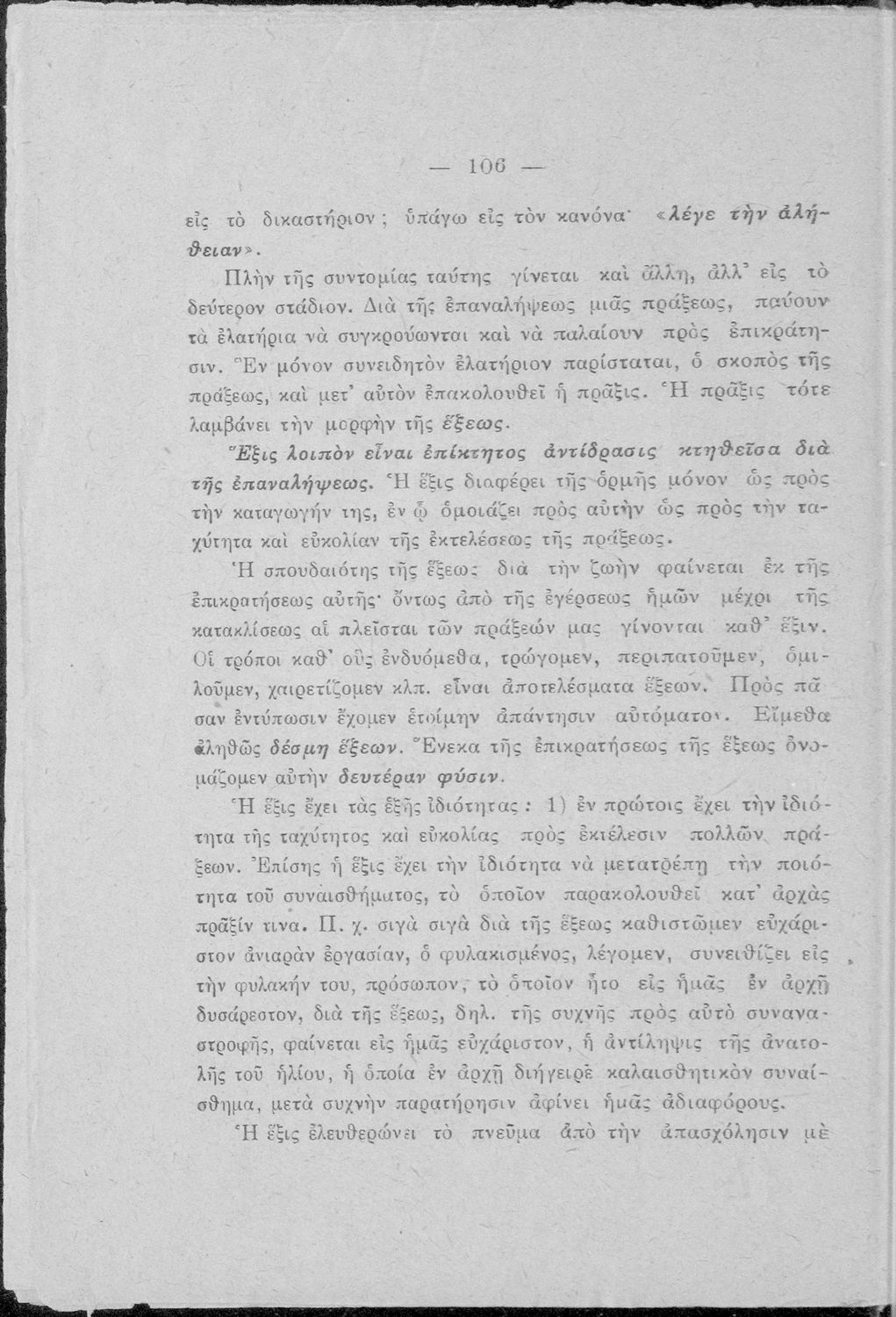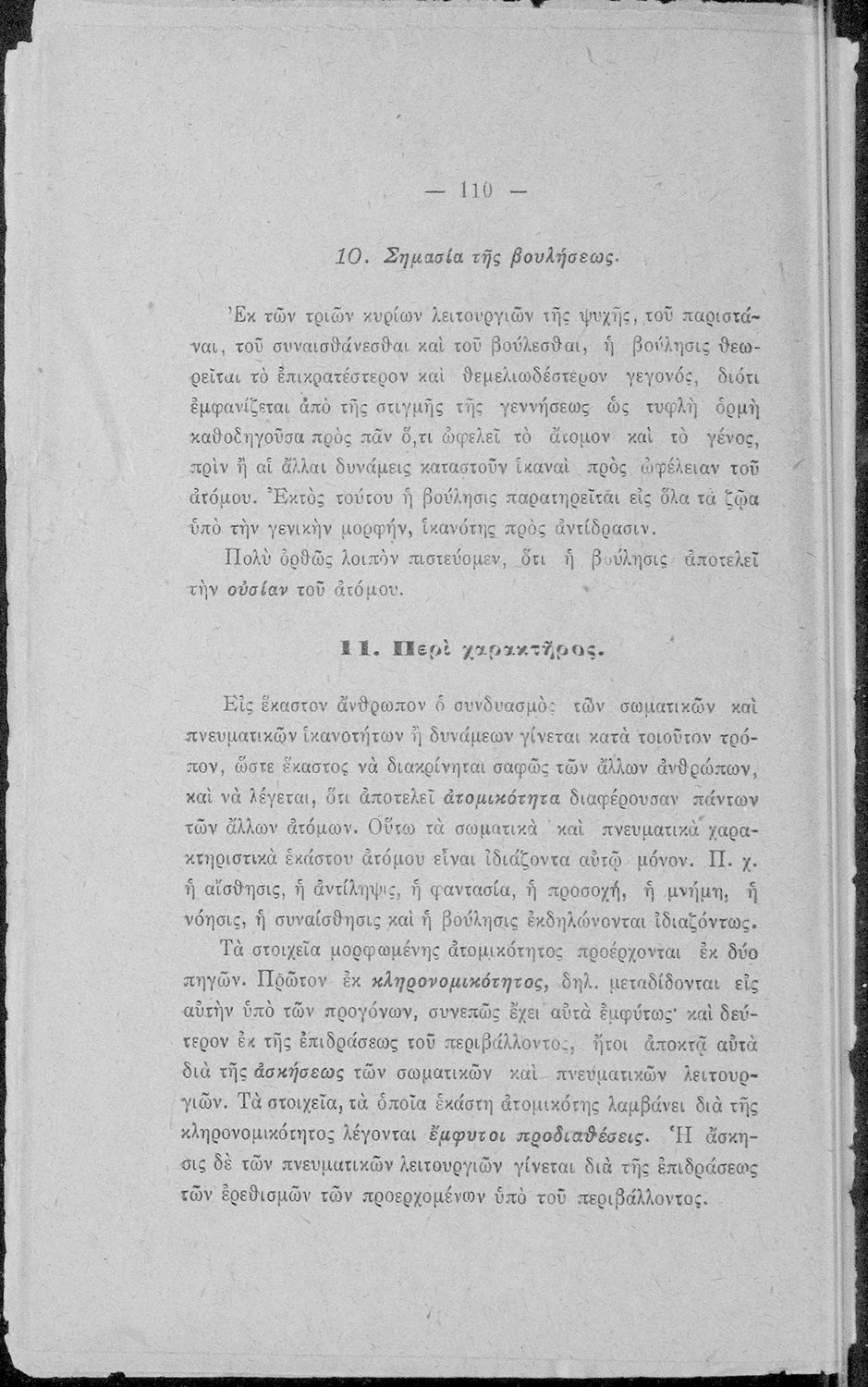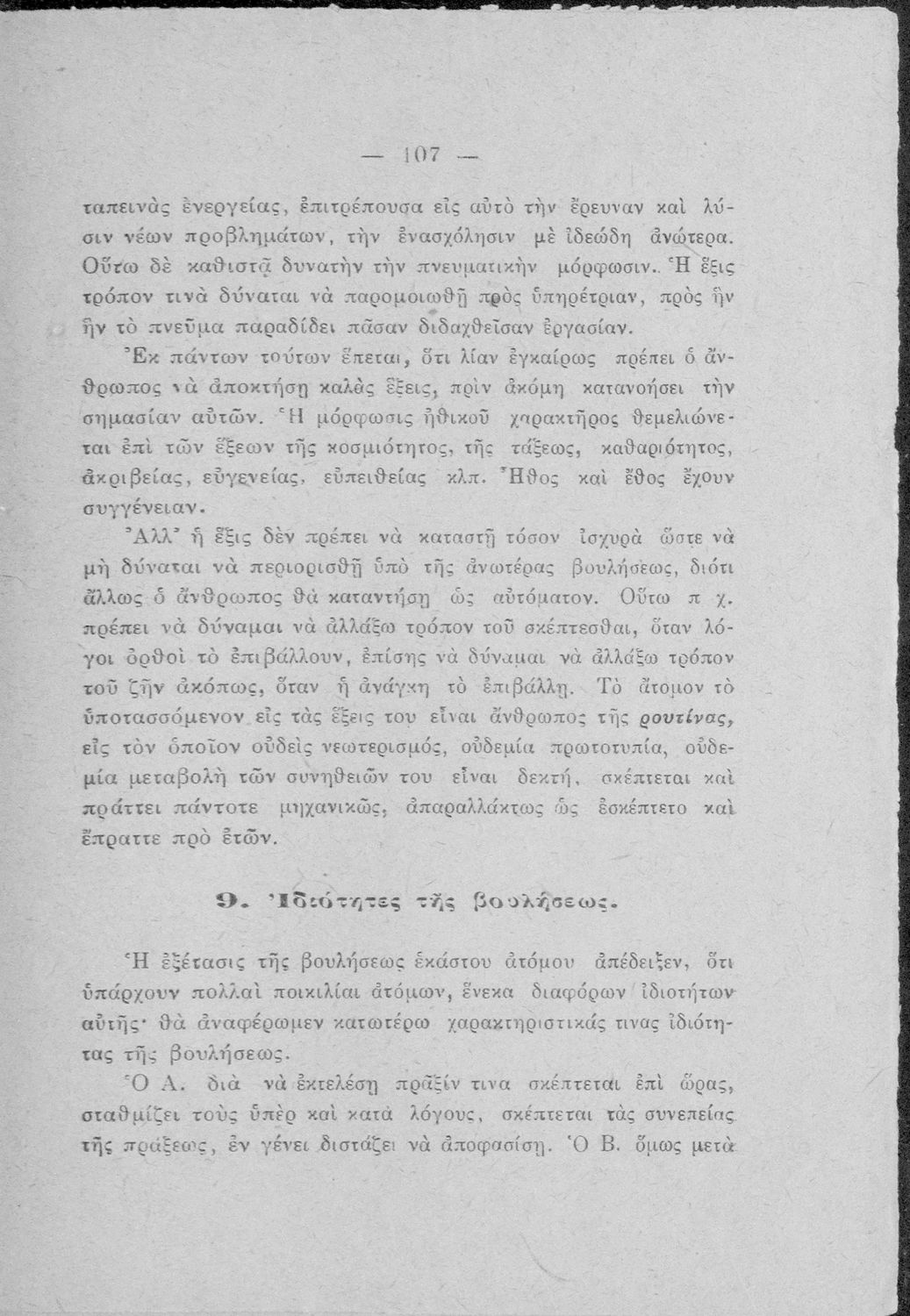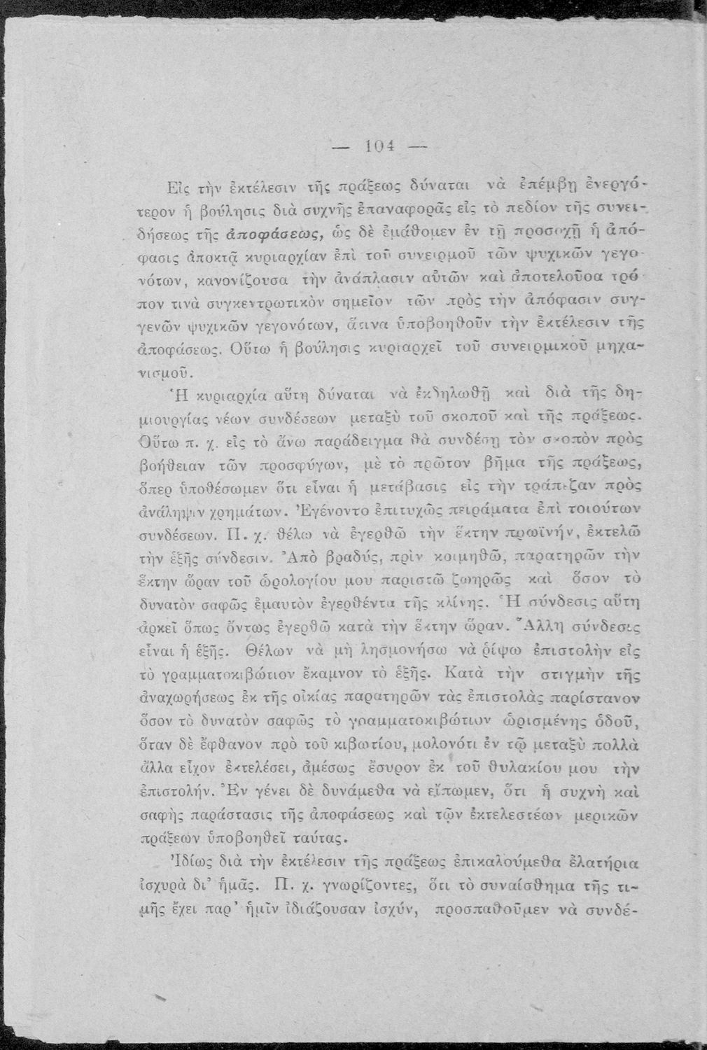 Βαθμίδα εκπαίδευσης: Δευτεροβάθμια Τάξη: Γ' Γυμνασίου Μάθημα: Ψυχολογία Γλώσσα: Απλή καθαρεύουσα Παρουσίαση περιεχομένου: Σχολικό εγχειρίδιο Πειραματικής Ψυχολογίας για τη Γ΄ Γυμνασίου χωρισμένο σε τρία τμήματα: το παριστάναι, το συναισθάνεσθαι, και το βούλεσθαι. |