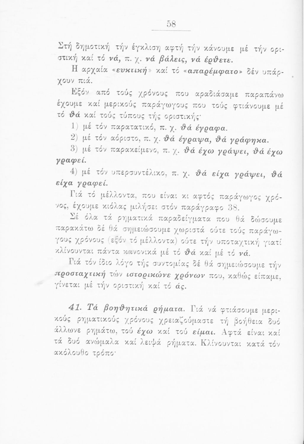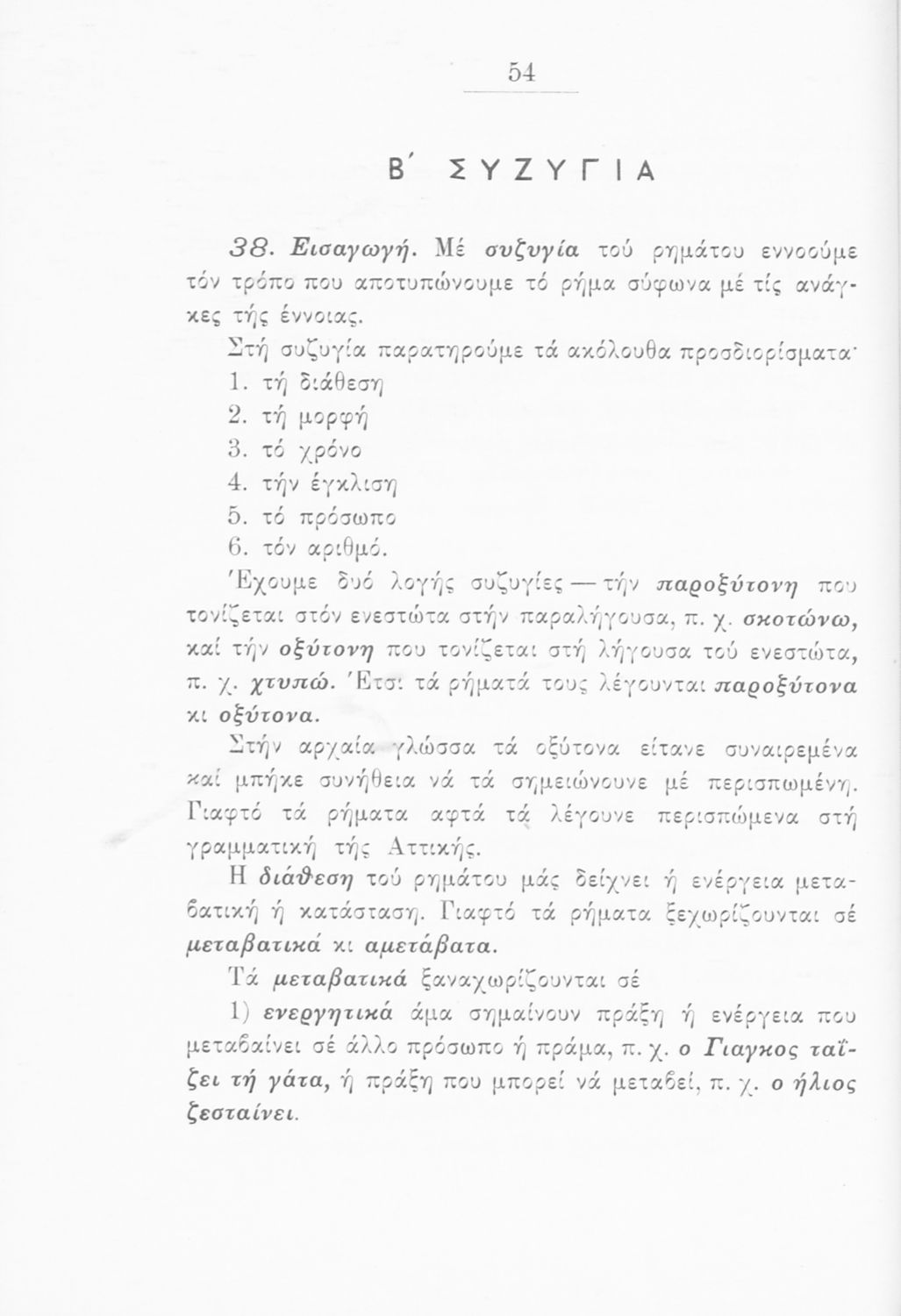 Σχολικό εγχειρίδιο Συντακτικού που γράφηκε από επιτροπή Καθηγητών που ορίστηκε από το Υπουργείο των Θρησκευμάτων και της Εθνικής Παιδείας. Περιλαμβάνει κανόνες και παραδείγματα του συντακτικού της Δημοτικής.