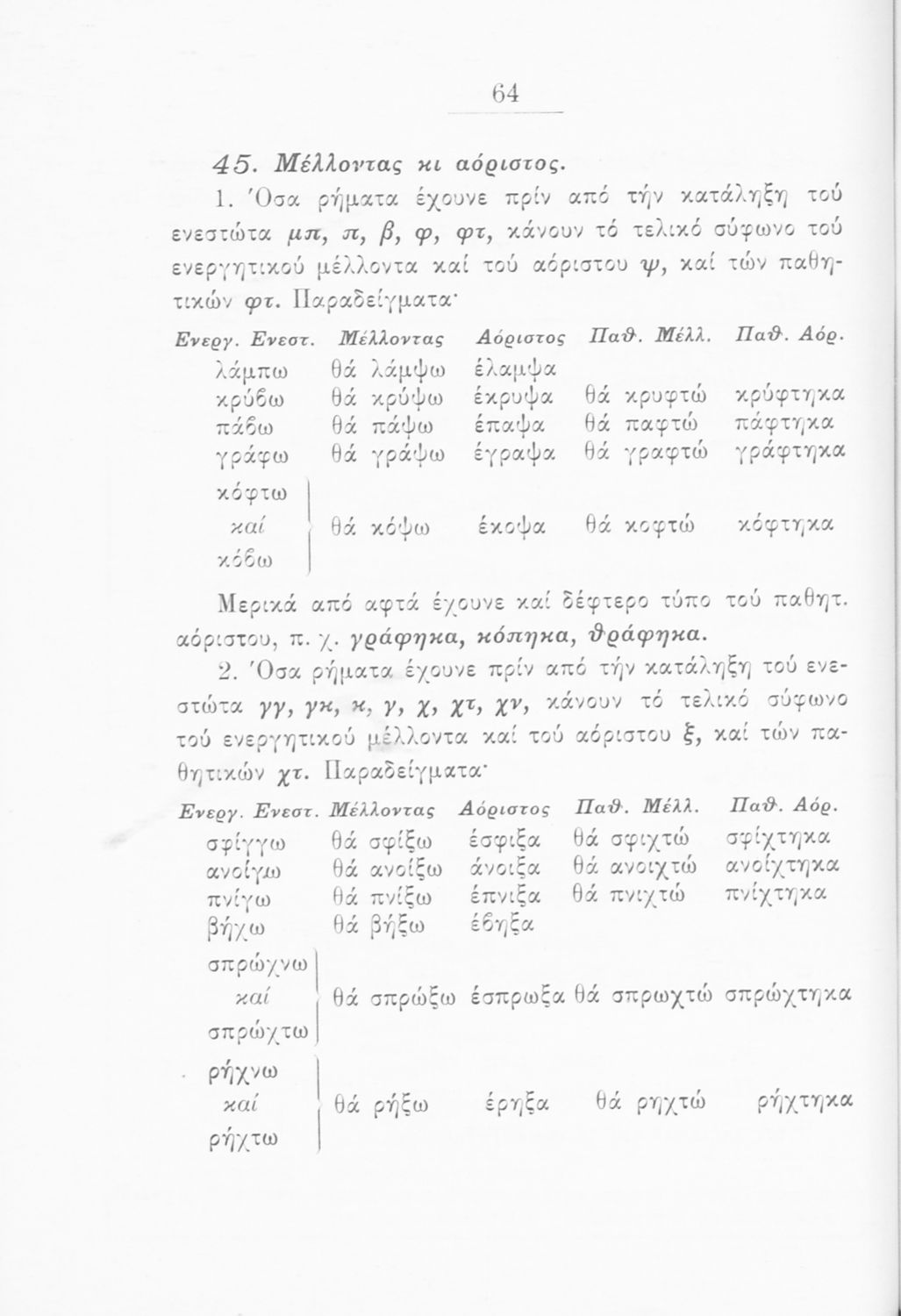 Σχολικό εγχειρίδιο Συντακτικού που γράφηκε από επιτροπή Καθηγητών που ορίστηκε από το Υπουργείο των Θρησκευμάτων και της Εθνικής Παιδείας. Περιλαμβάνει κανόνες και παραδείγματα του συντακτικού της Δημοτικής.