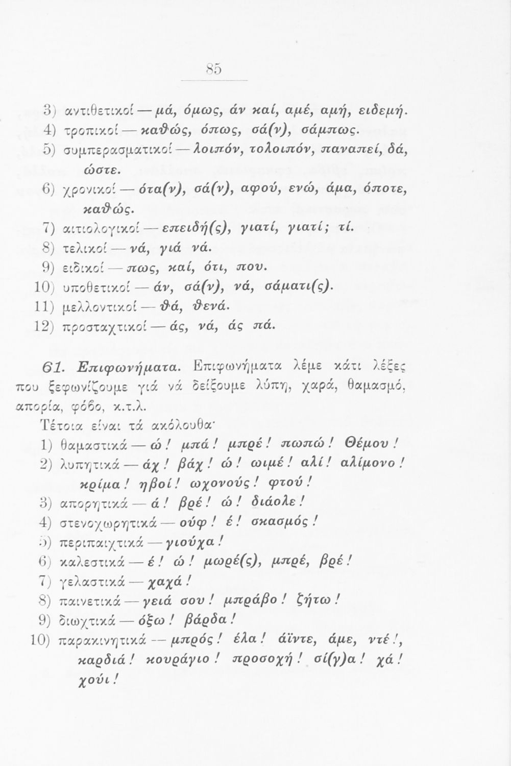 Μάθημα: Νέα Ελληνικά Γλώσσα: Δημοτική Παρουσίαση περιεχομένου: Γραμματική της δημοτικής που μεθοδολογικά βασίζεται στο έργο του Ψυχάρη και στις γραμματικές των Φιλήντα, Pernot και Thumb. Σύμφωνα με το συγγραφέα "φιλοδοξία της γραμματικής τούτης είναι να βοηθήσει το στέριωμα της γλωσσικής πειθαρχίας και να δώσει στα παιδιά μια σύντομη και σωστή γραμματική της γλώσσας τους". |