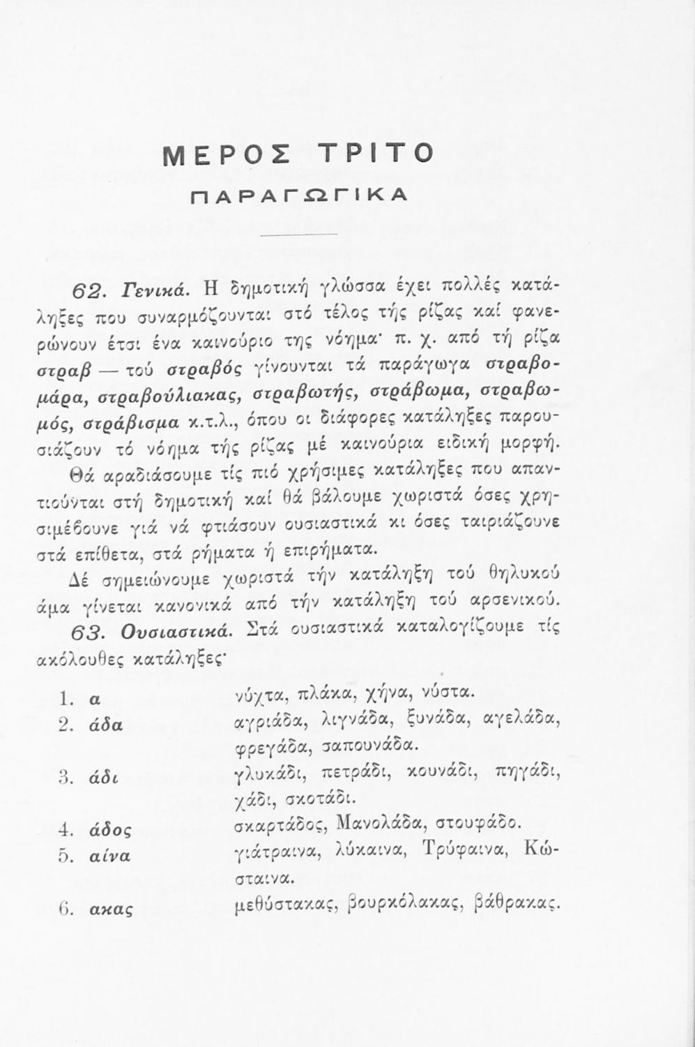 Γραμματική της δημοτικής που μεθοδολογικά βασίζεται στο έργο του Ψυχάρη και στις γραμματικές των Φιλήντα, Pernot και Thumb. Σύμφωνα με το συγγραφέα "φιλοδοξία της γραμματικής τούτης είναι να βοηθήσει το στέριωμα της γλωσσικής πειθαρχίας και να δώσει στα παιδιά μια σύντομη και σωστή γραμματική της γλώσσας τους".