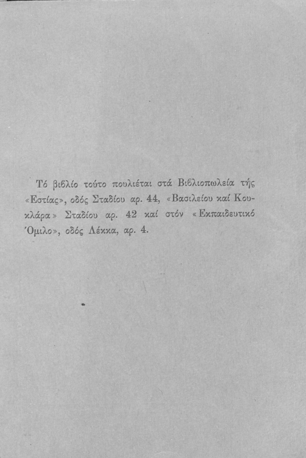 Εκδότης: Τυπογραφείο «Εστία» Έτος έκδοσης: 1914 Τόπος έκδοσης: Αθήνα |