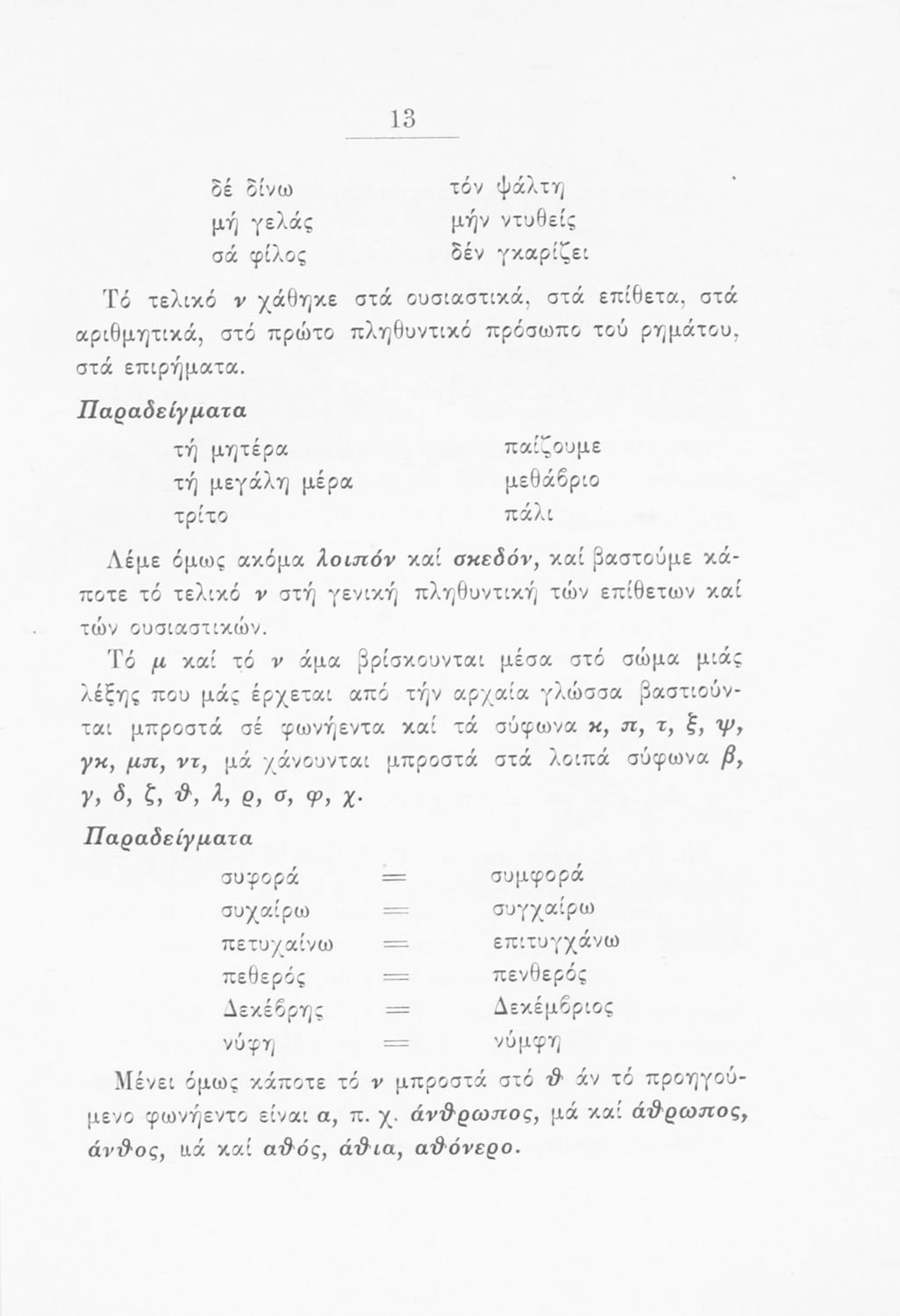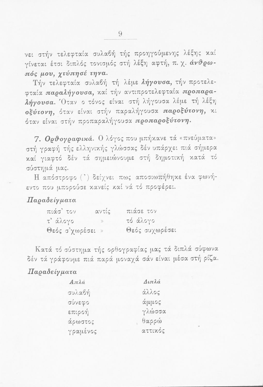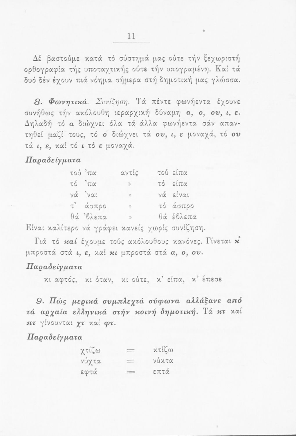 Γραμματική της δημοτικής που μεθοδολογικά βασίζεται στο έργο του Ψυχάρη και στις γραμματικές των Φιλήντα, Pernot και Thumb. Σύμφωνα με το συγγραφέα "φιλοδοξία της γραμματικής τούτης είναι να βοηθήσει το στέριωμα της γλωσσικής πειθαρχίας και να δώσει στα παιδιά μια σύντομη και σωστή γραμματική της γλώσσας τους".