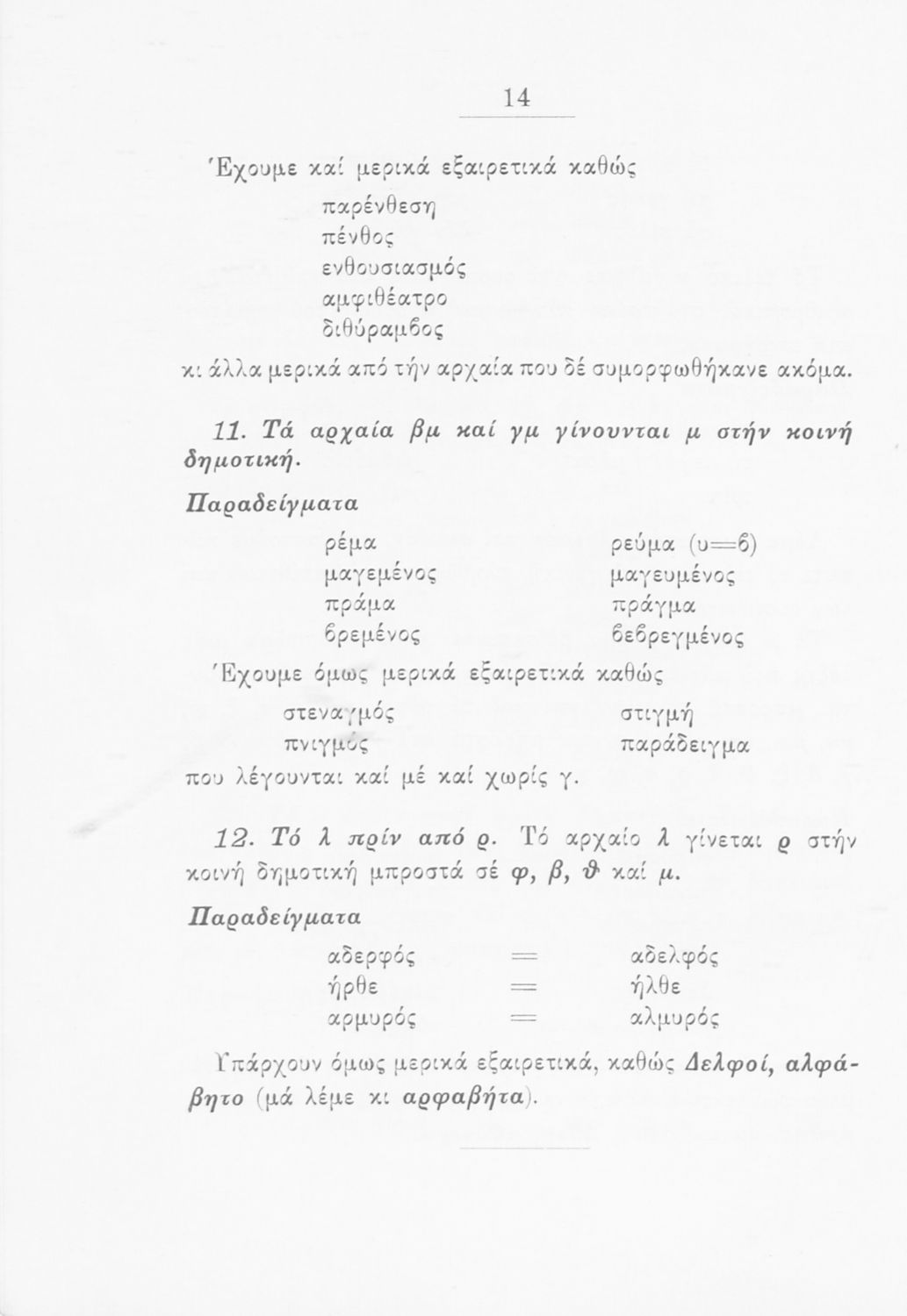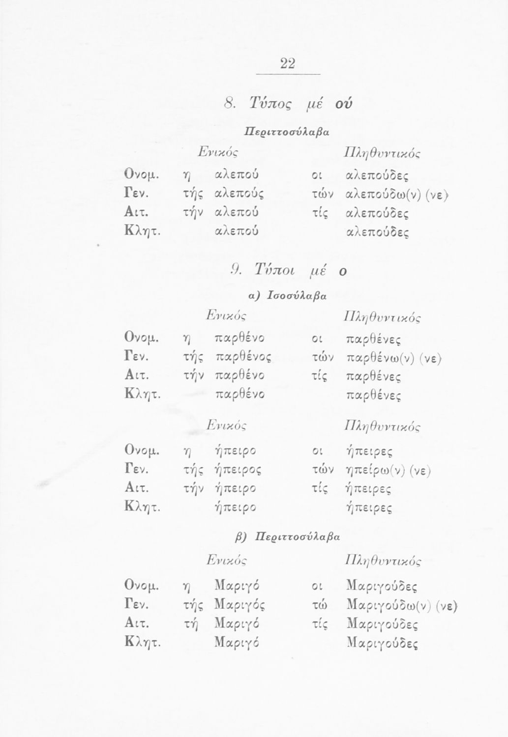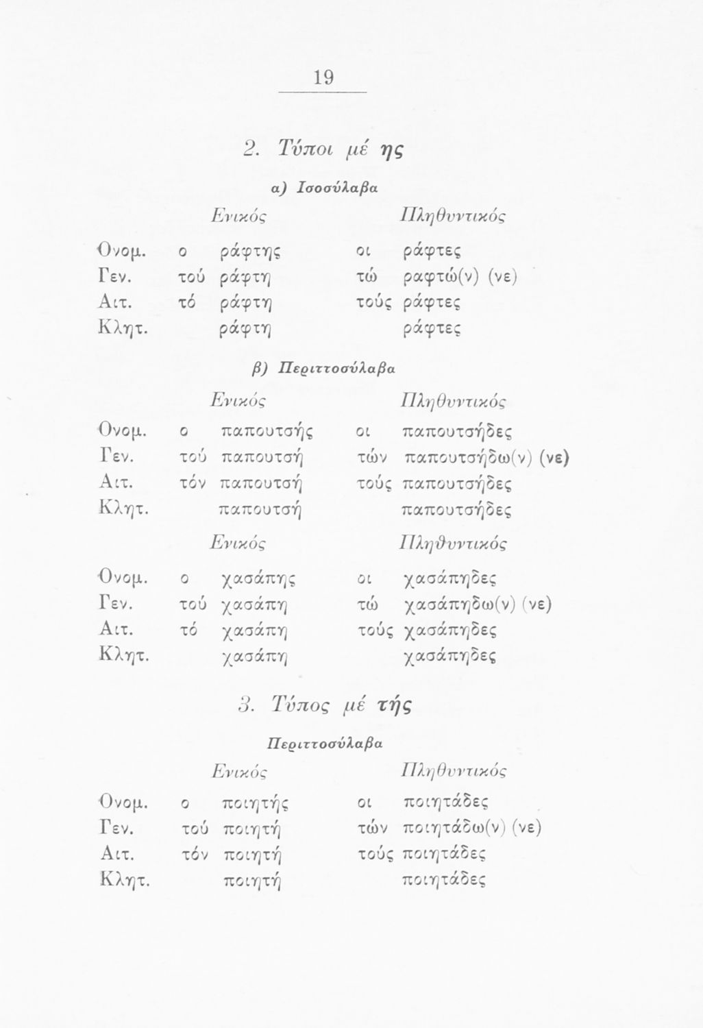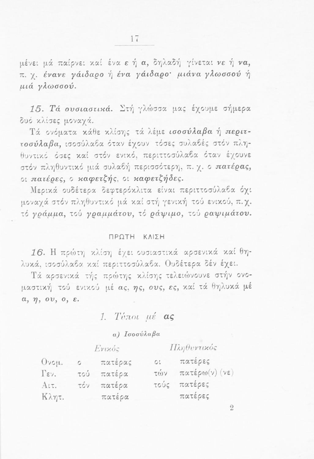 Γραμματική της δημοτικής που μεθοδολογικά βασίζεται στο έργο του Ψυχάρη και στις γραμματικές των Φιλήντα, Pernot και Thumb. Σύμφωνα με το συγγραφέα "φιλοδοξία της γραμματικής τούτης είναι να βοηθήσει το στέριωμα της γλωσσικής πειθαρχίας και να δώσει στα παιδιά μια σύντομη και σωστή γραμματική της γλώσσας τους".