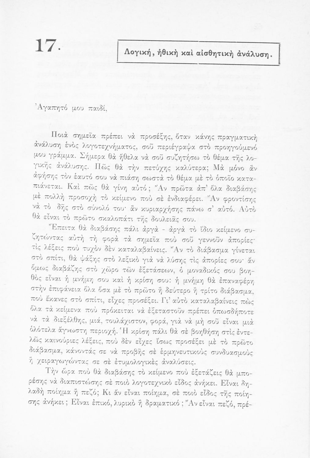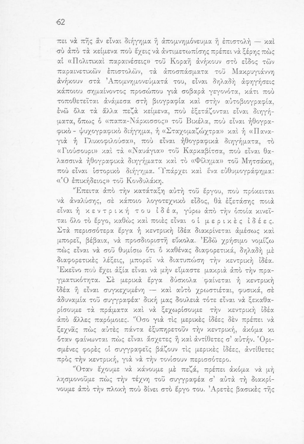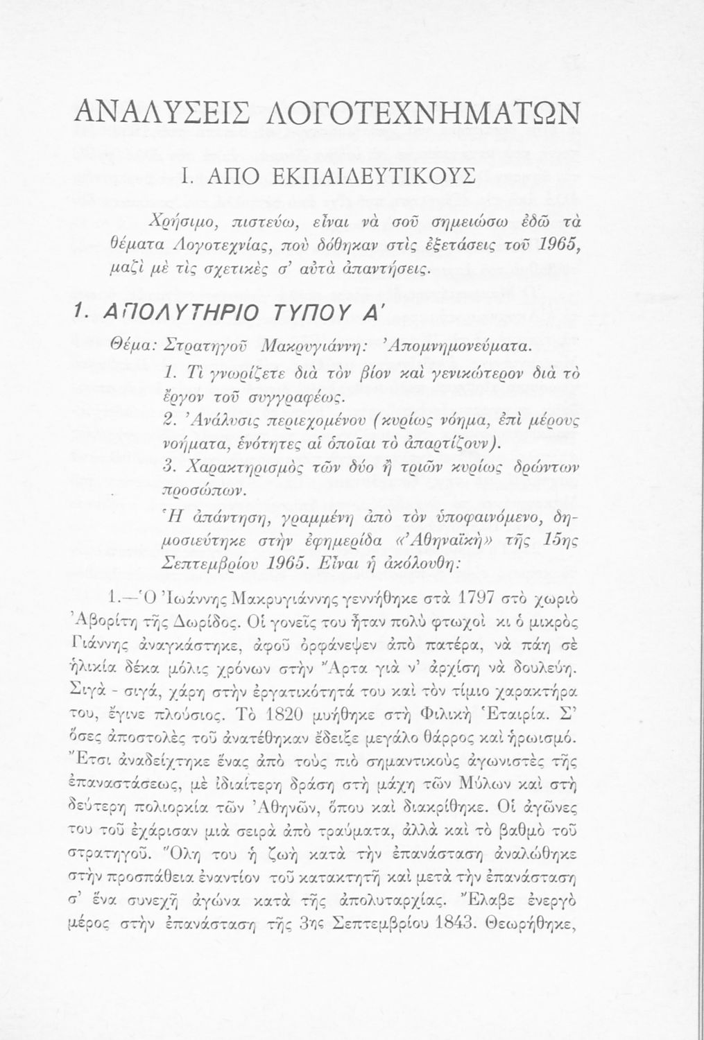 Μαθητικό βοήθημα Νέων Ελληνικών για τη Μέση Εκπαίδευση που περιλαμβάνει οδηγίες για την ανάλυση και εννοιολογική προσέγγιση των νεοελληνικών λογοτεχνικών κειμένων. Φέρει ιδιόχειρη αφιέρωση.