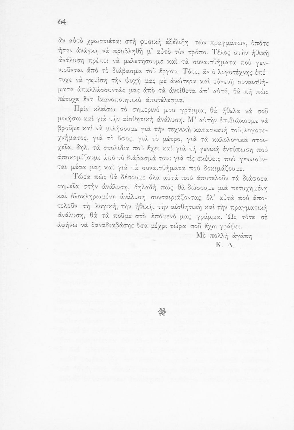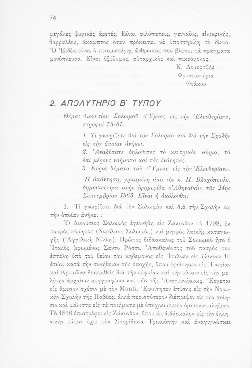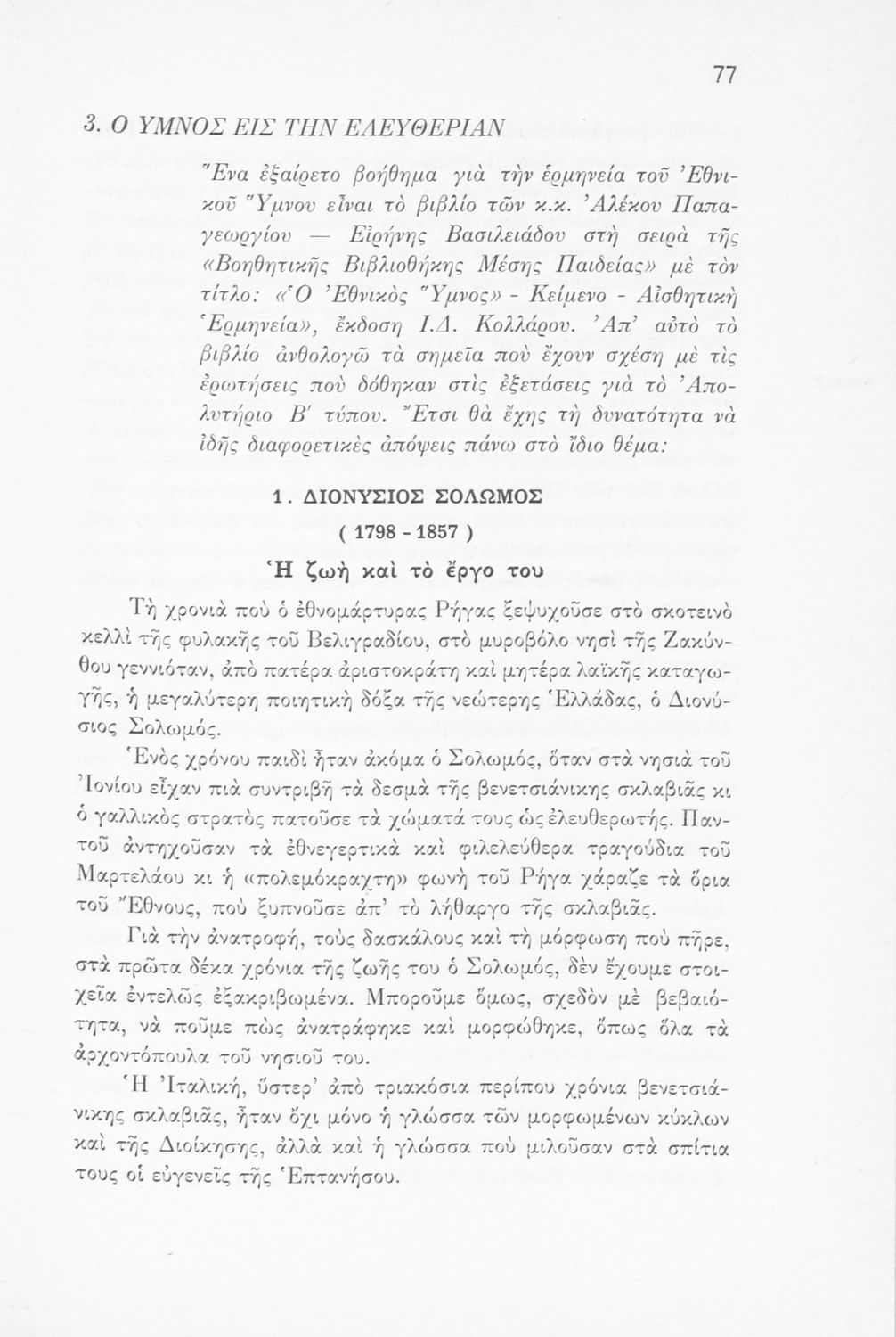 Μαθητικό βοήθημα Νέων Ελληνικών για τη Μέση Εκπαίδευση που περιλαμβάνει οδηγίες για την ανάλυση και εννοιολογική προσέγγιση των νεοελληνικών λογοτεχνικών κειμένων. Φέρει ιδιόχειρη αφιέρωση.