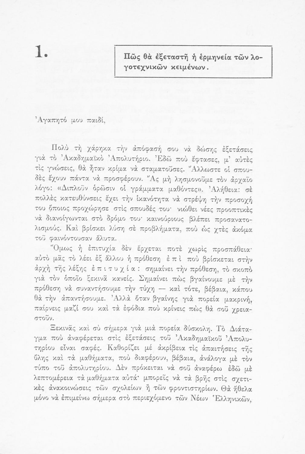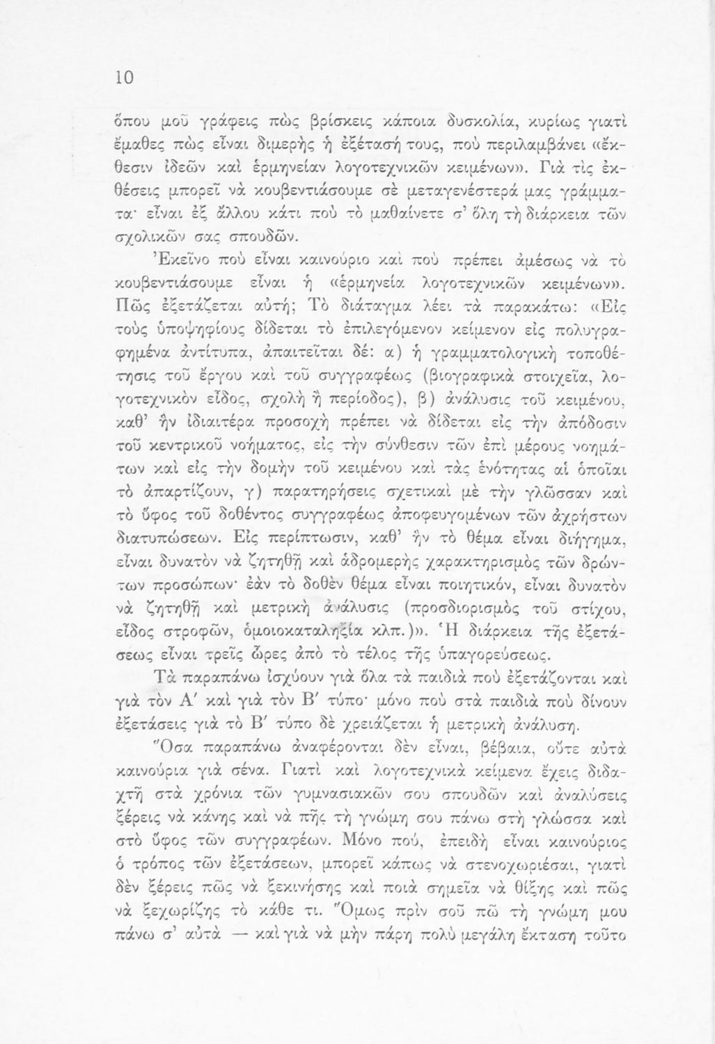 Μαθητικό βοήθημα Νέων Ελληνικών για τη Μέση Εκπαίδευση που περιλαμβάνει οδηγίες για την ανάλυση και εννοιολογική προσέγγιση των νεοελληνικών λογοτεχνικών κειμένων. Φέρει ιδιόχειρη αφιέρωση.