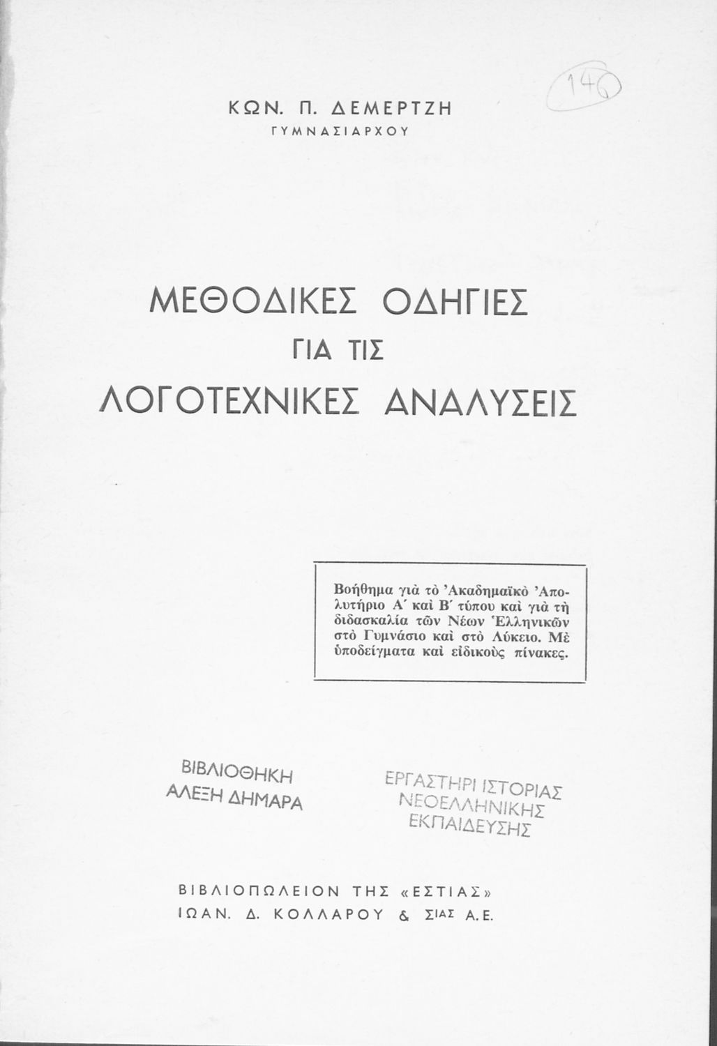 Τίτλος: Μεθοδικές οδηγίες για τις λογοτεχνικές αναλύσεις