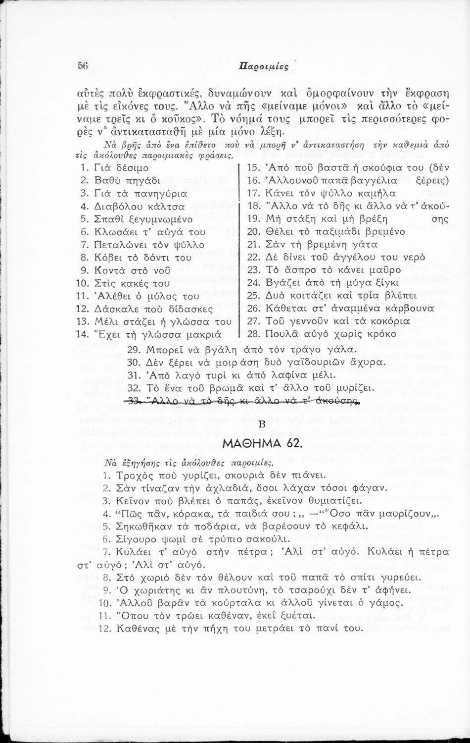 Το σύγγραμμα ήταν εκπαιδευτικό βοήθημα για το μάθημα των νέων ελληνικών. Αρχικά, έχει οδηγίες, οι οποίες απευθύνονται στους δασκάλους και τους μαθητές αντίστοιχα για την εξυπηρέτηση της διδασκαλίας. Στη ...