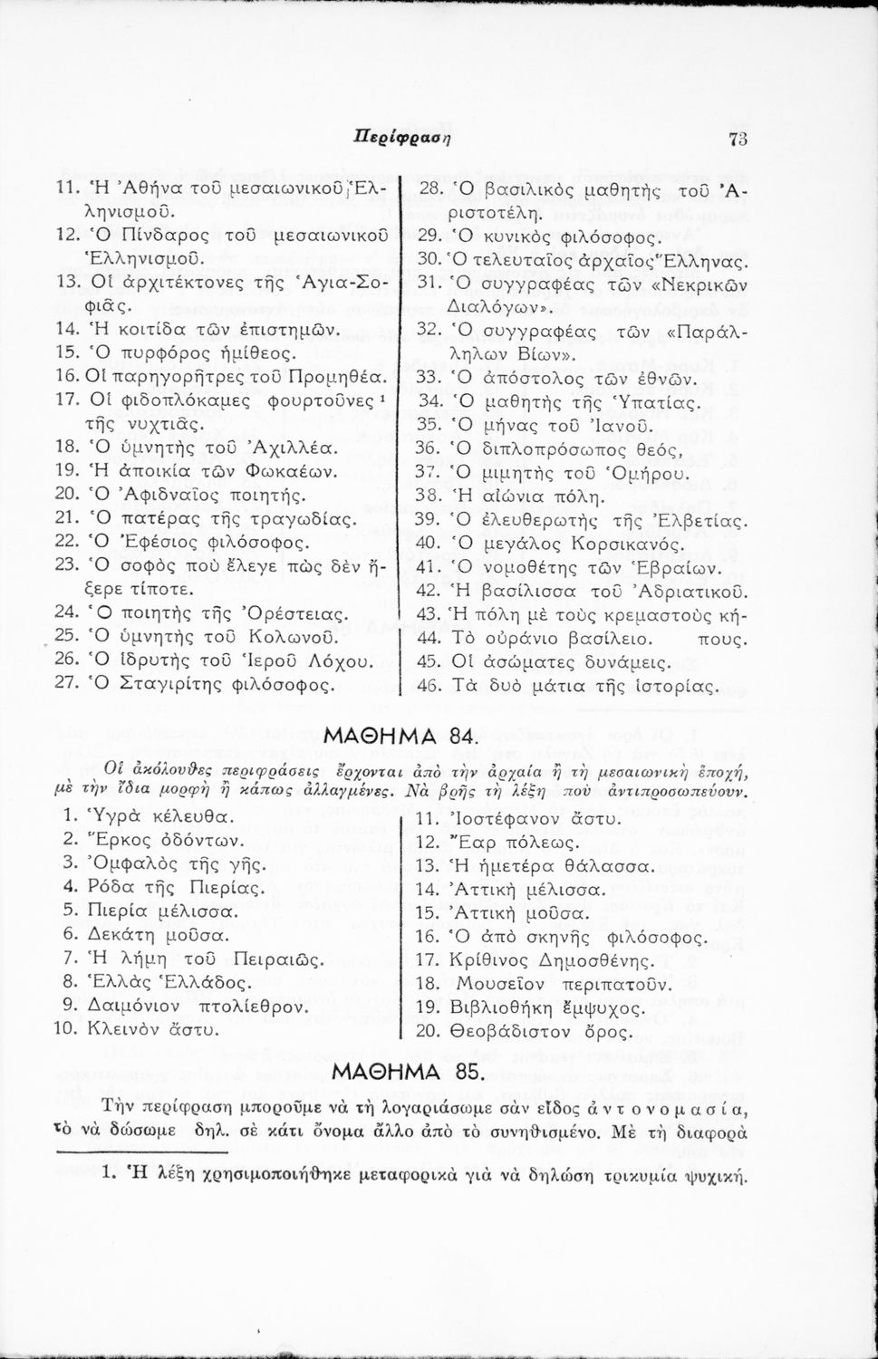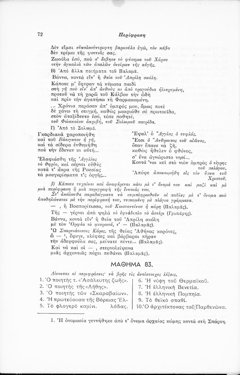Μαθητικό βοήθημα που περιέχει ατομικές και ομαδικές ασκήσεις και αποσκοπεί στη γλωσσική καλλιέργεια και την παροχή πραγματολογικών γνώσεων.