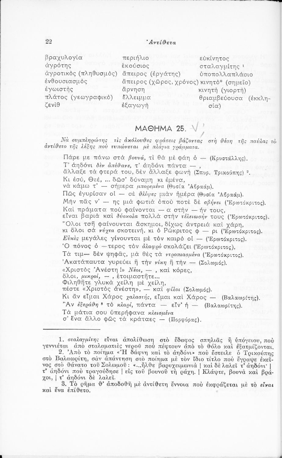 Μαθητικό βοήθημα που περιέχει ατομικές και ομαδικές ασκήσεις και αποσκοπεί στη γλωσσική καλλιέργεια και την παροχή πραγματολογικών γνώσεων.