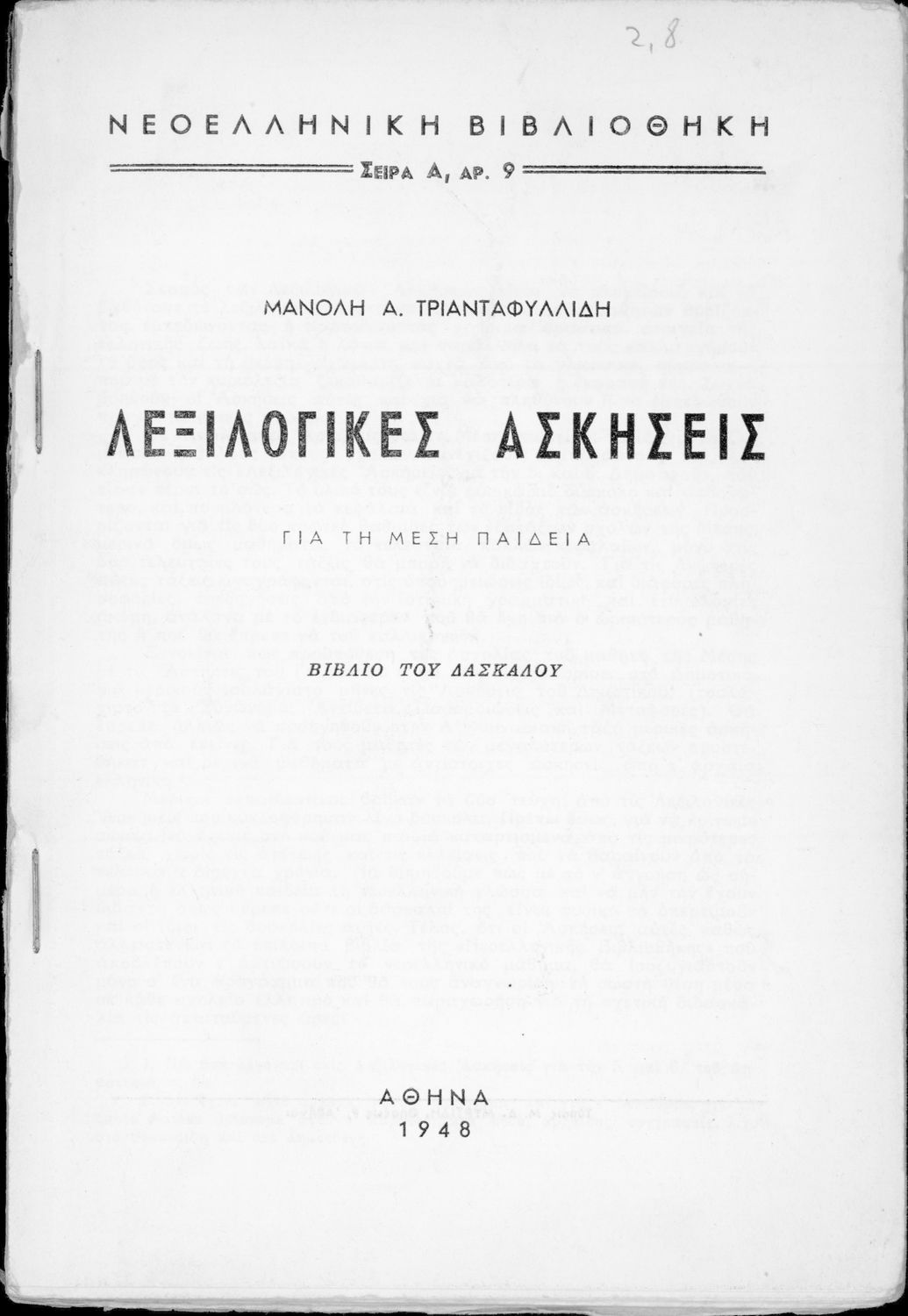 Τίτλος: Λεξιλογικές Ασκήσεις για την μέση παιδεία βιβλίο του δασκάλου