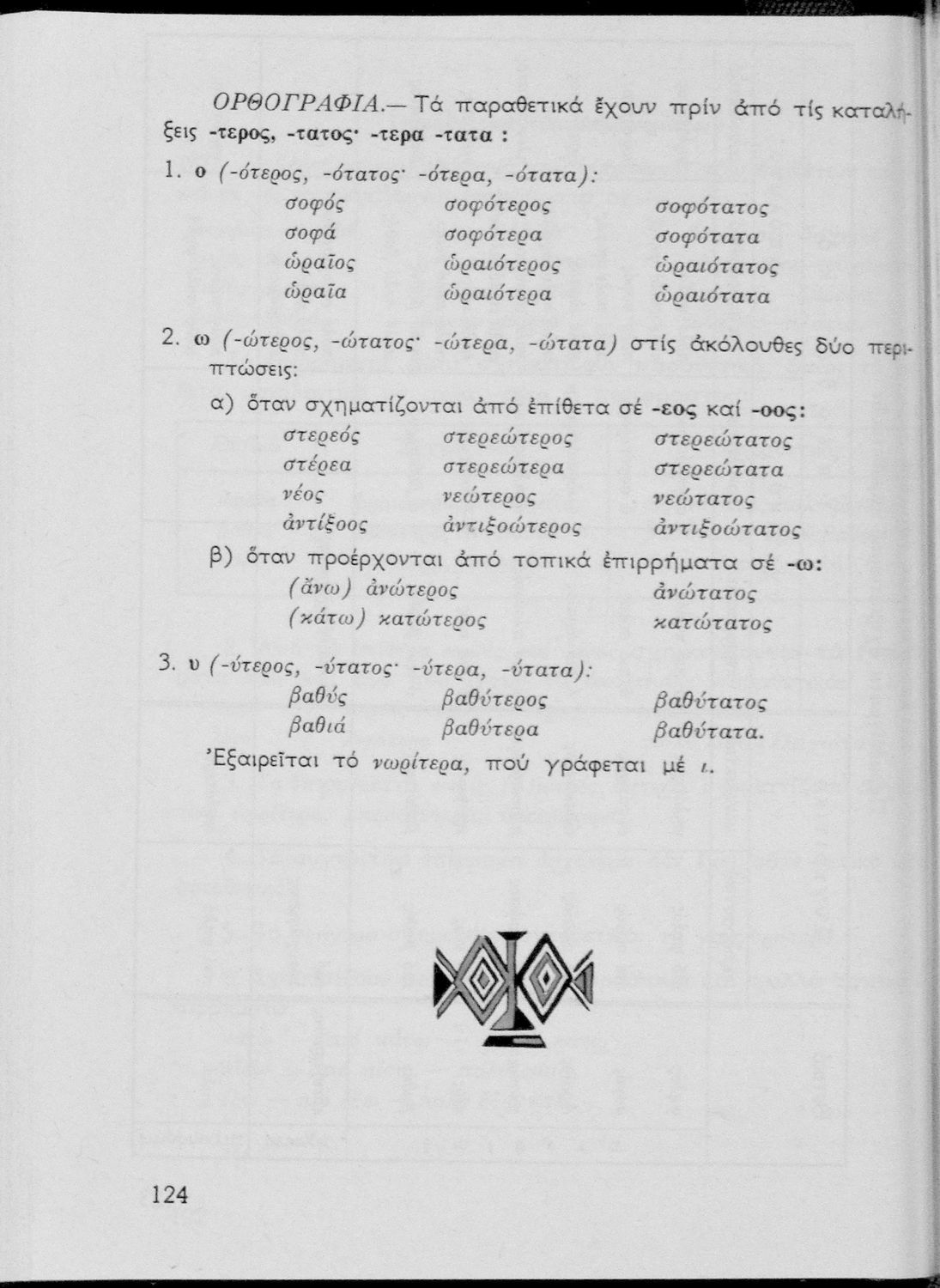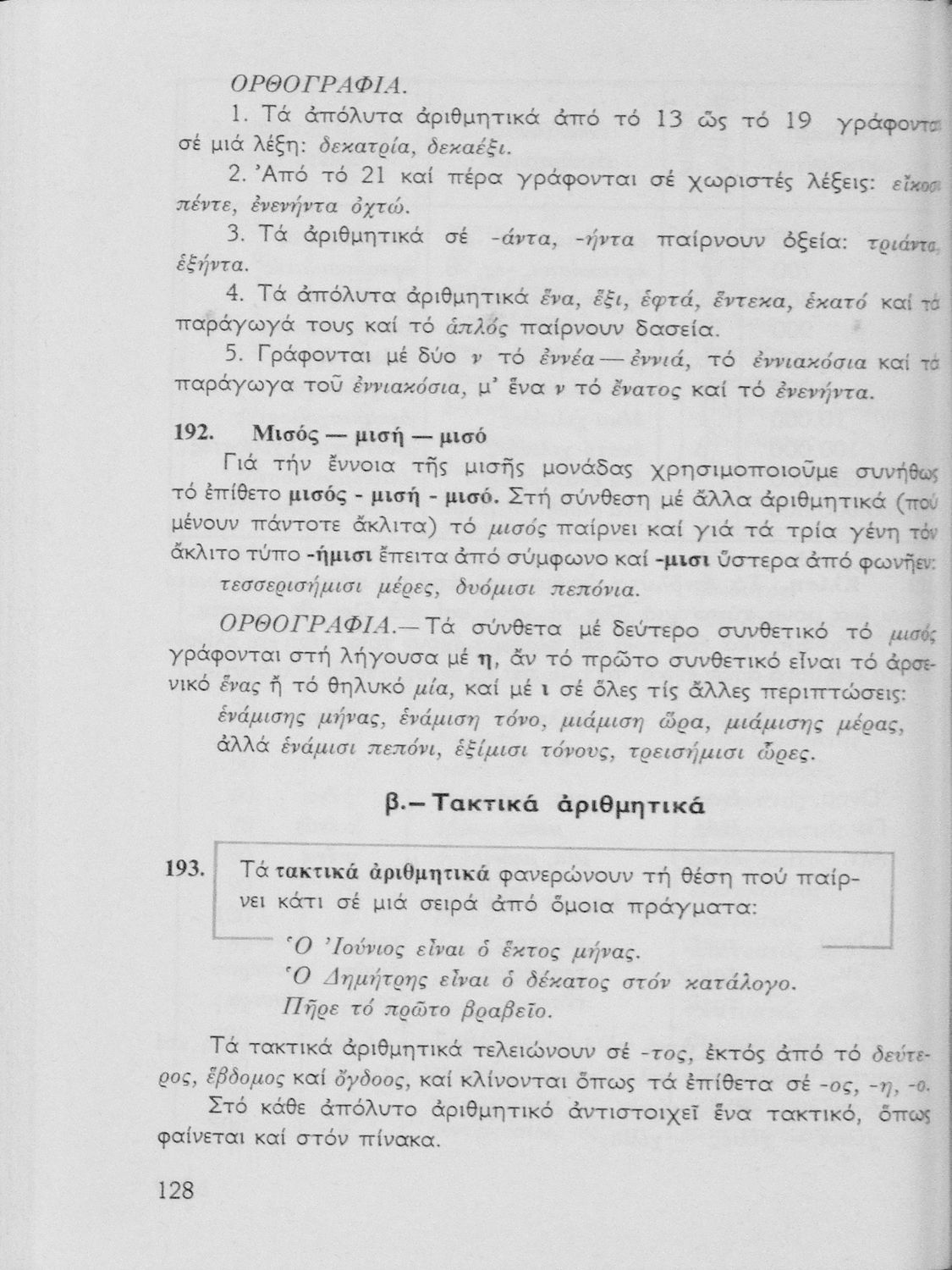 Σχολικό εγχειρίδιο με κανόνες Γραμματικής της Νεοελληνικής Γλώσσας. Το συγκεκριμένο τεύχος περιέχει ορθογραφικό οδηγό και κατάλογο ανώμαλων ρημάτων.