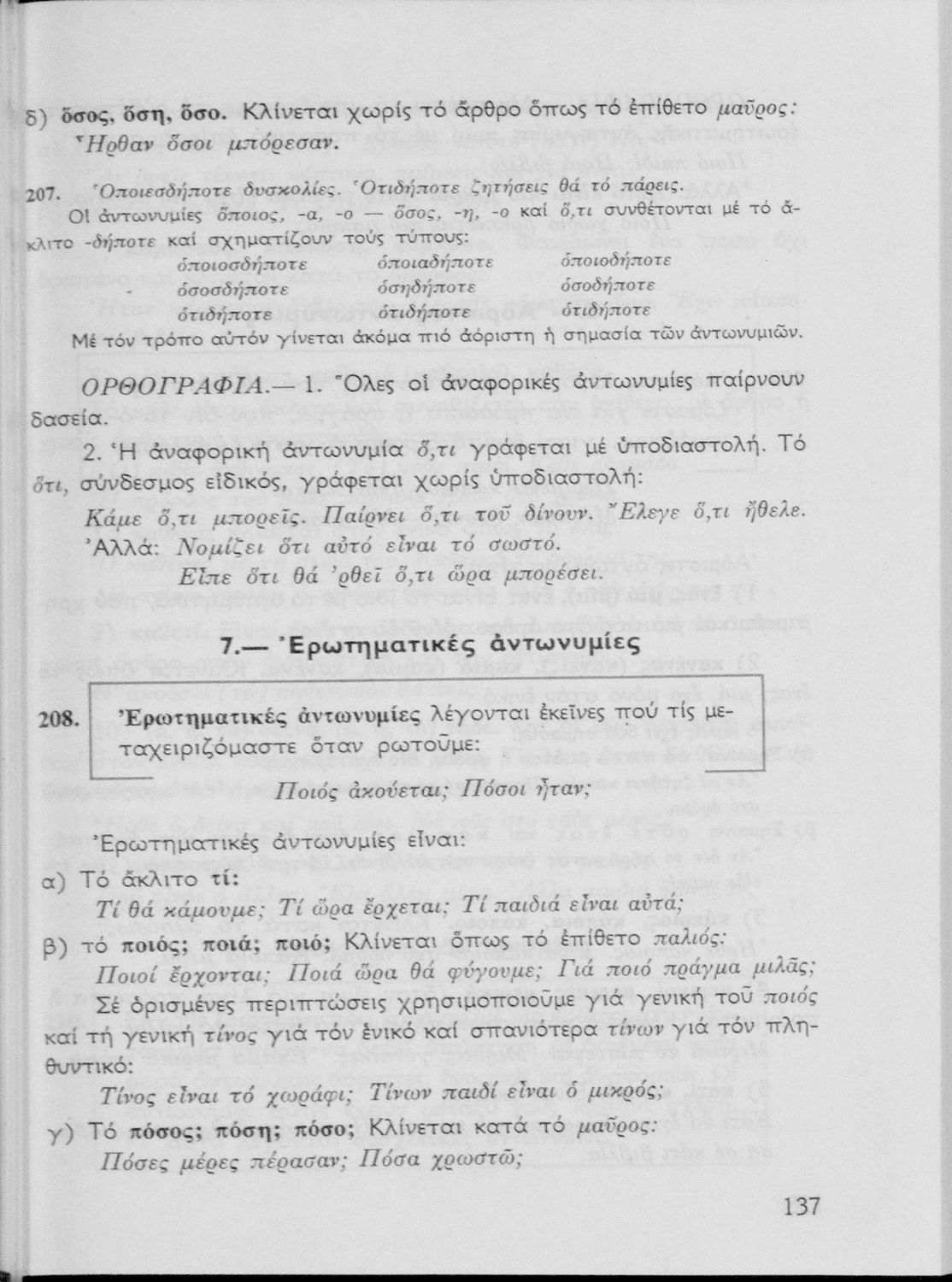 Σχολικό εγχειρίδιο Γραμματικής για τη ΣΤ΄ Δημοτικού και τις τάξεις της Μέσης εκπαίδευσης. Περιέχει τη διδασκαλία της Γραμματικής της δημοτικής και για τους παιδαγωγούς αλλά και τους μαθητές.
