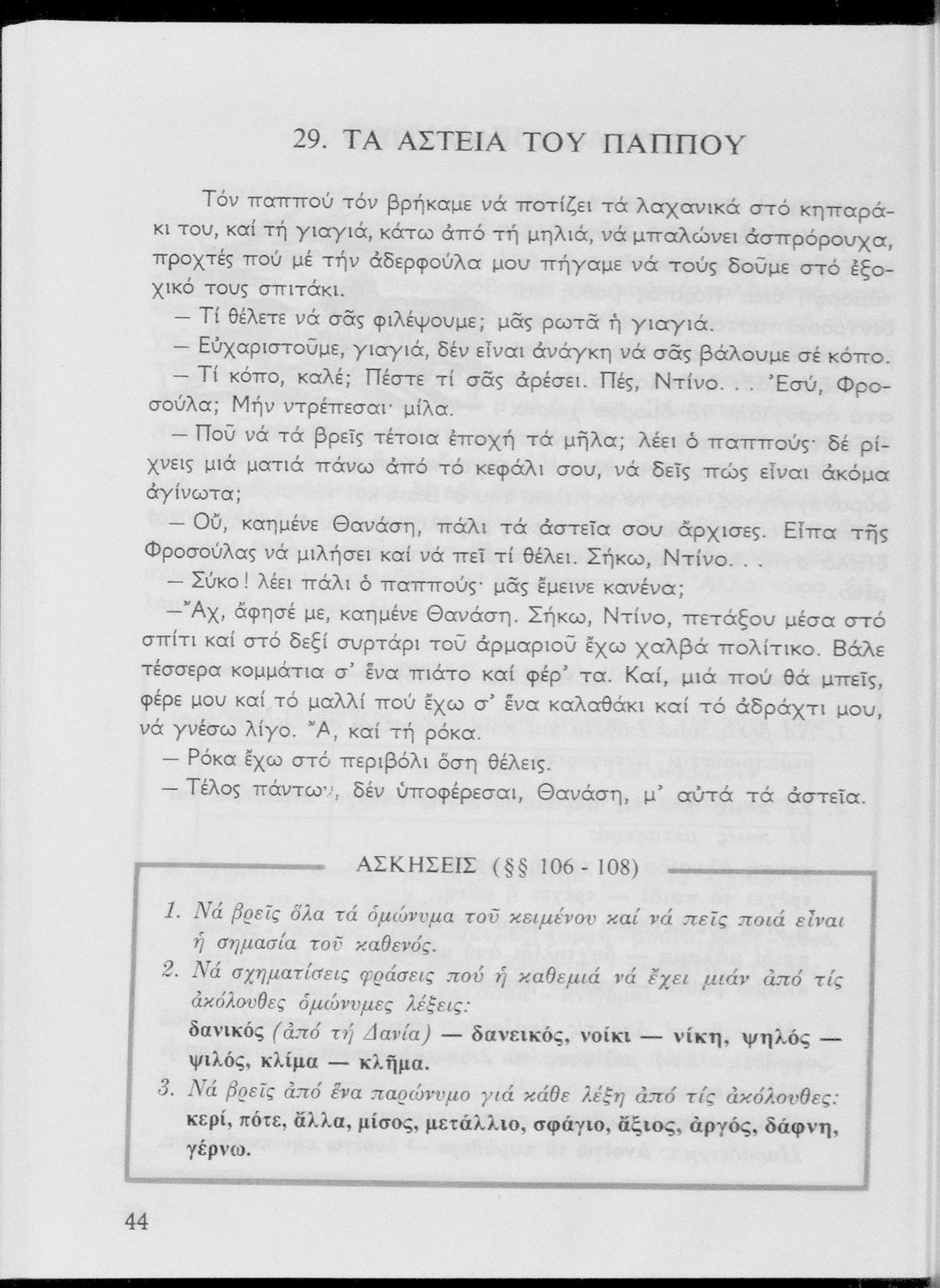 Γραμματικής Νέων Ελληνικών για τις τάξεις του Δημοτικού. Στο βιβλίο παρουσιάζονται οι βασικοί κανόνες γραμματικής και συντακτικού της ελληνικής γλώσσας.
