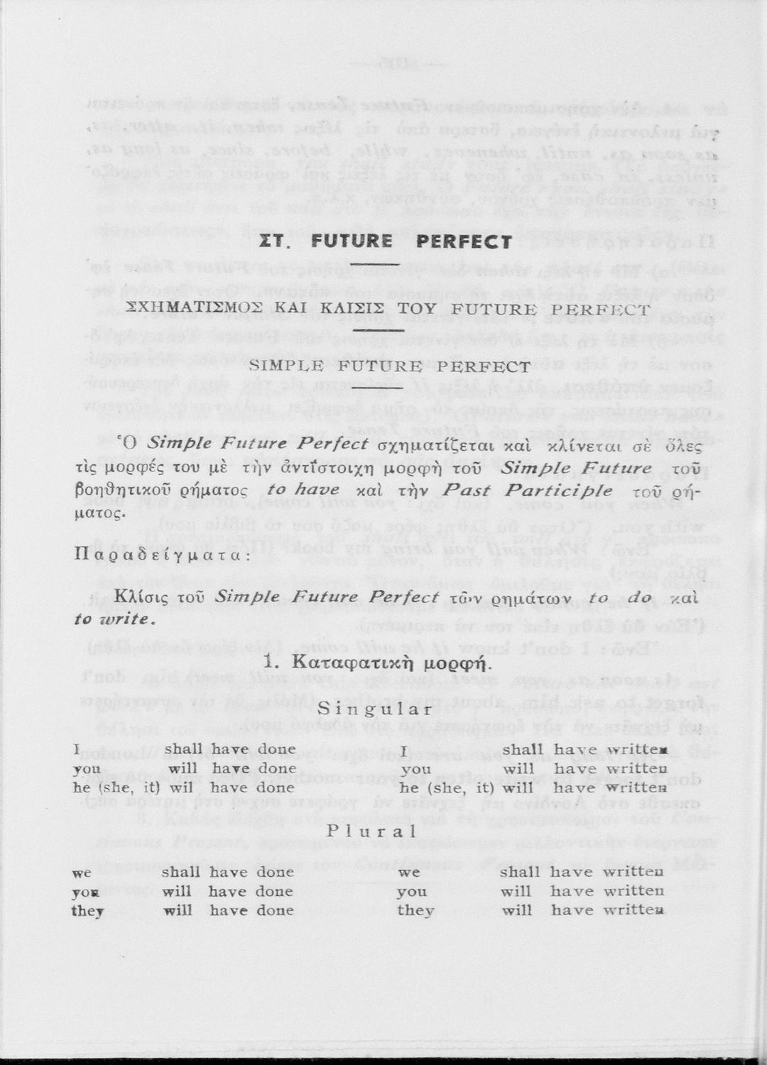 Σχολικό εγχειρίδιο Γλώσσας Δημοτικού που περιλαμβάνει τους κανόνες της γραμματικής και του συντακτικού της καθαρεύουσας.