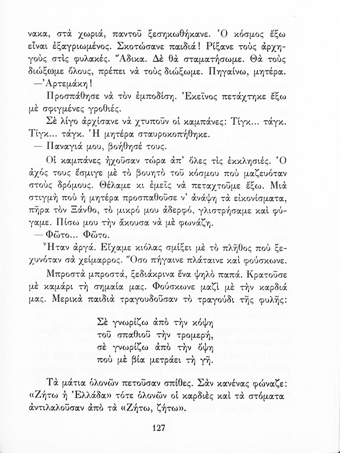 Αναγνωστικό ΣΤ΄ Δημοτικού που περιλαμβάνει πεζά και ποιήματα εμπνευσμένα από τη θρησκευτική, εθνική και κοινωνική ζωή καθώς και από τις ασχολίες των Ελλήνων.
