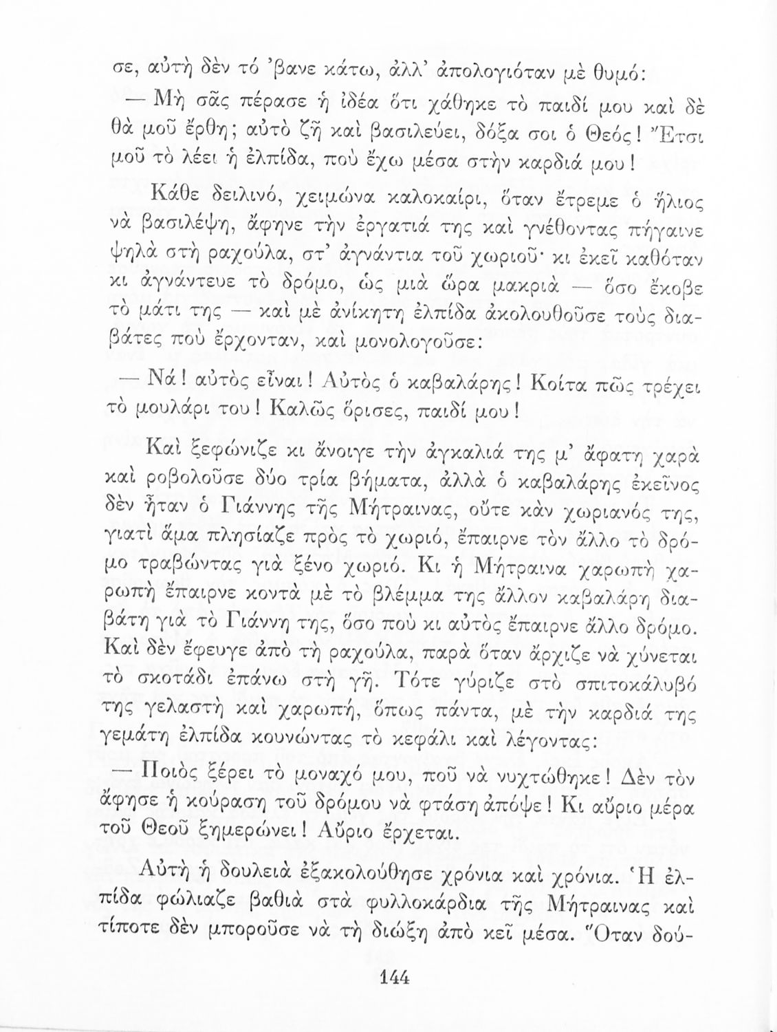 Αναγνωστικό ΣΤ΄ Δημοτικού που περιλαμβάνει πεζά και ποιήματα εμπνευσμένα από τη θρησκευτική, εθνική και κοινωνική ζωή καθώς και από τις ασχολίες των Ελλήνων.