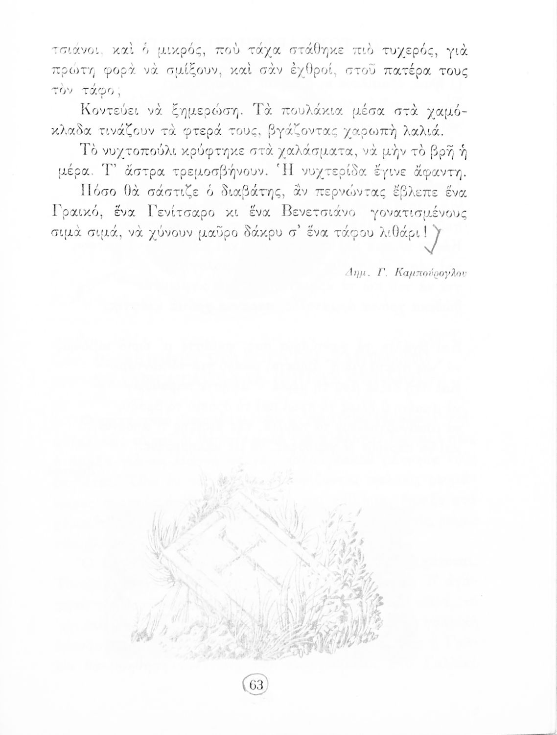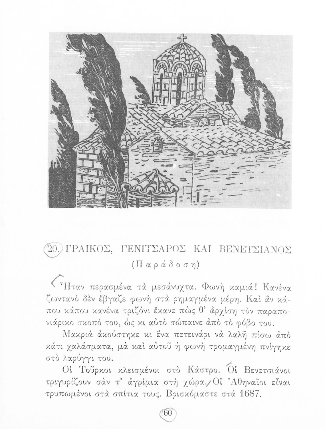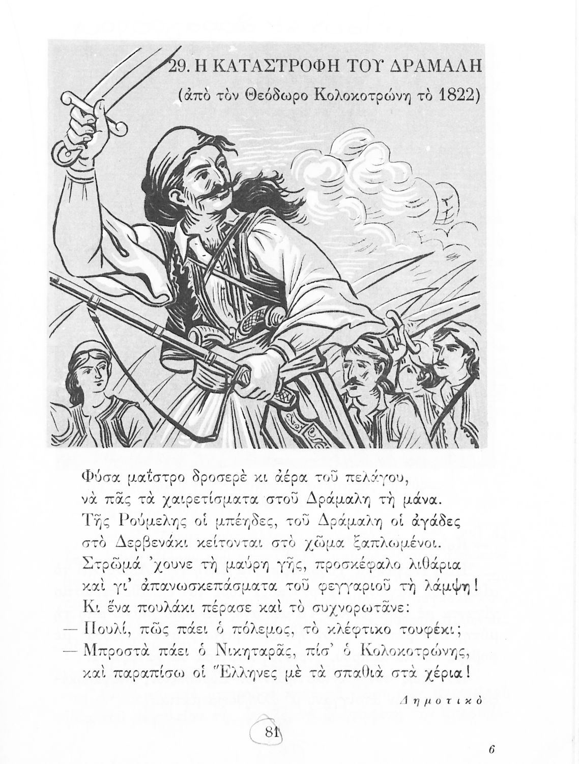 Αναγνωστικό ΣΤ΄ Δημοτικού που περιλαμβάνει πεζά και ποιήματα εμπνευσμένα από τη θρησκευτική, εθνική και κοινωνική ζωή καθώς και από τις ασχολίες των Ελλήνων.