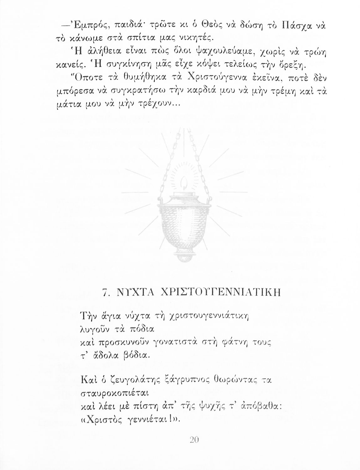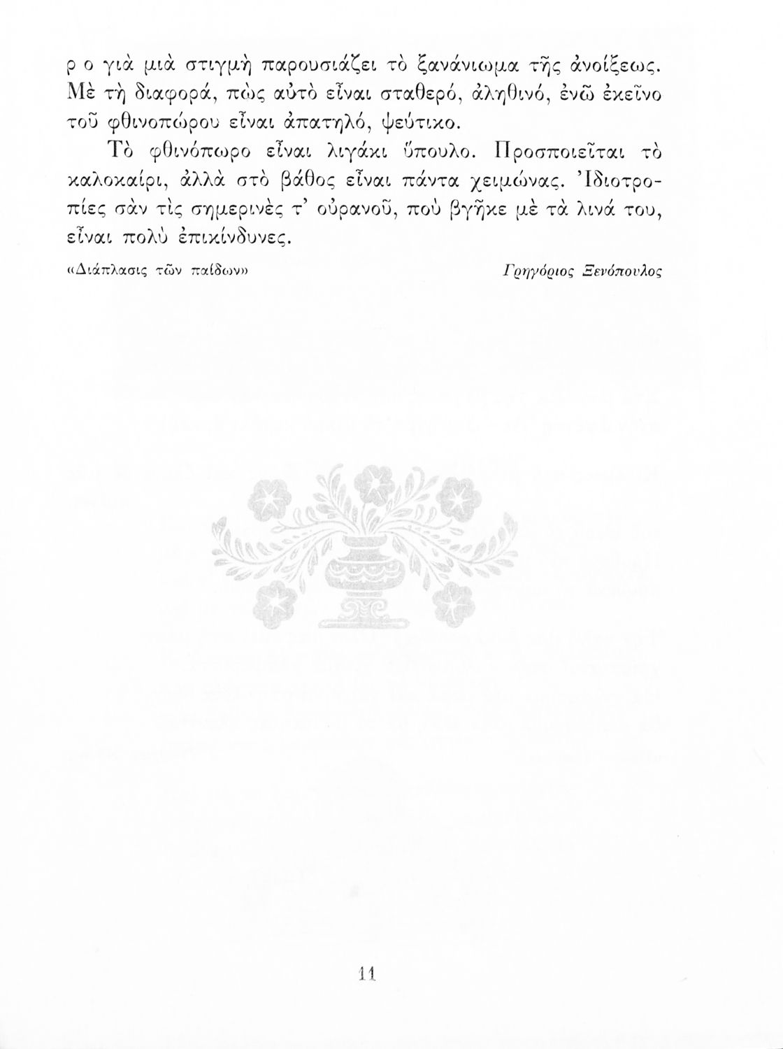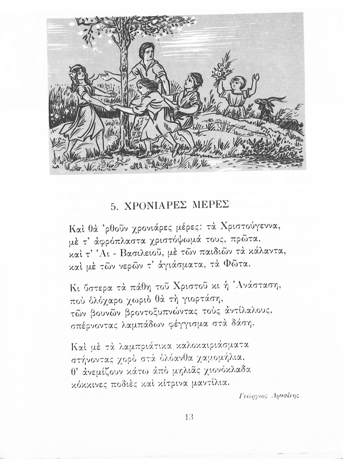 Αναγνωστικό ΣΤ΄ Δημοτικού που περιλαμβάνει πεζά και ποιήματα εμπνευσμένα από τη θρησκευτική, εθνική και κοινωνική ζωή καθώς και από τις ασχολίες των Ελλήνων.