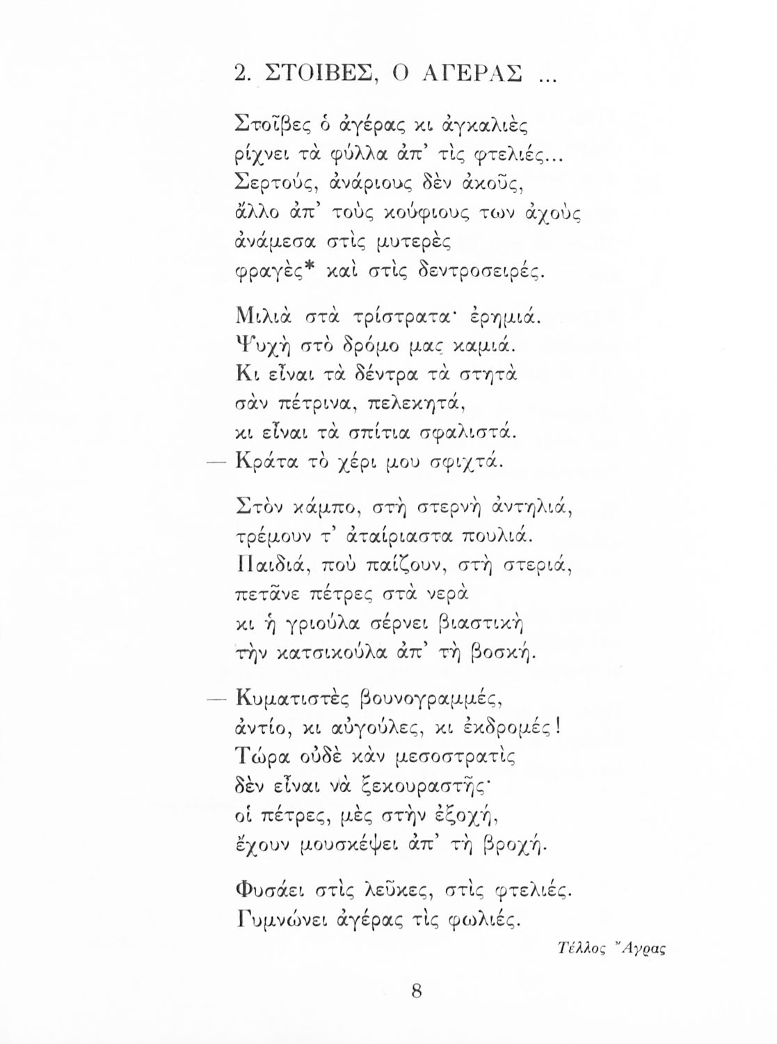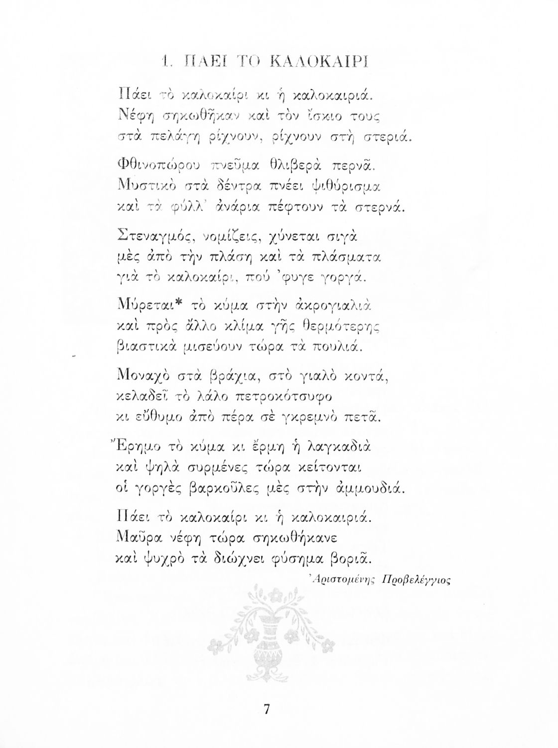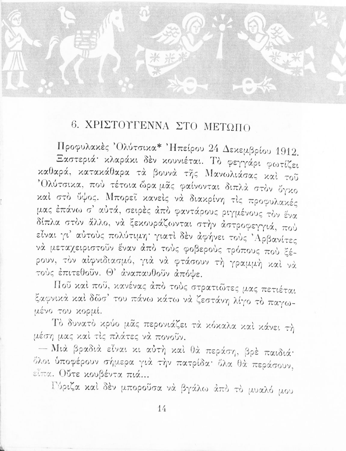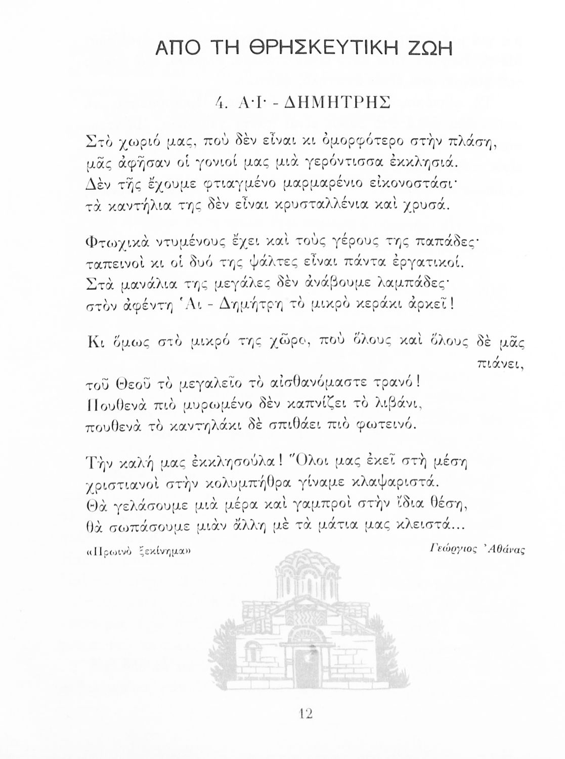 Αναγνωστικό ΣΤ΄ Δημοτικού που περιλαμβάνει πεζά και ποιήματα εμπνευσμένα από τη θρησκευτική, εθνική και κοινωνική ζωή καθώς και από τις ασχολίες των Ελλήνων.