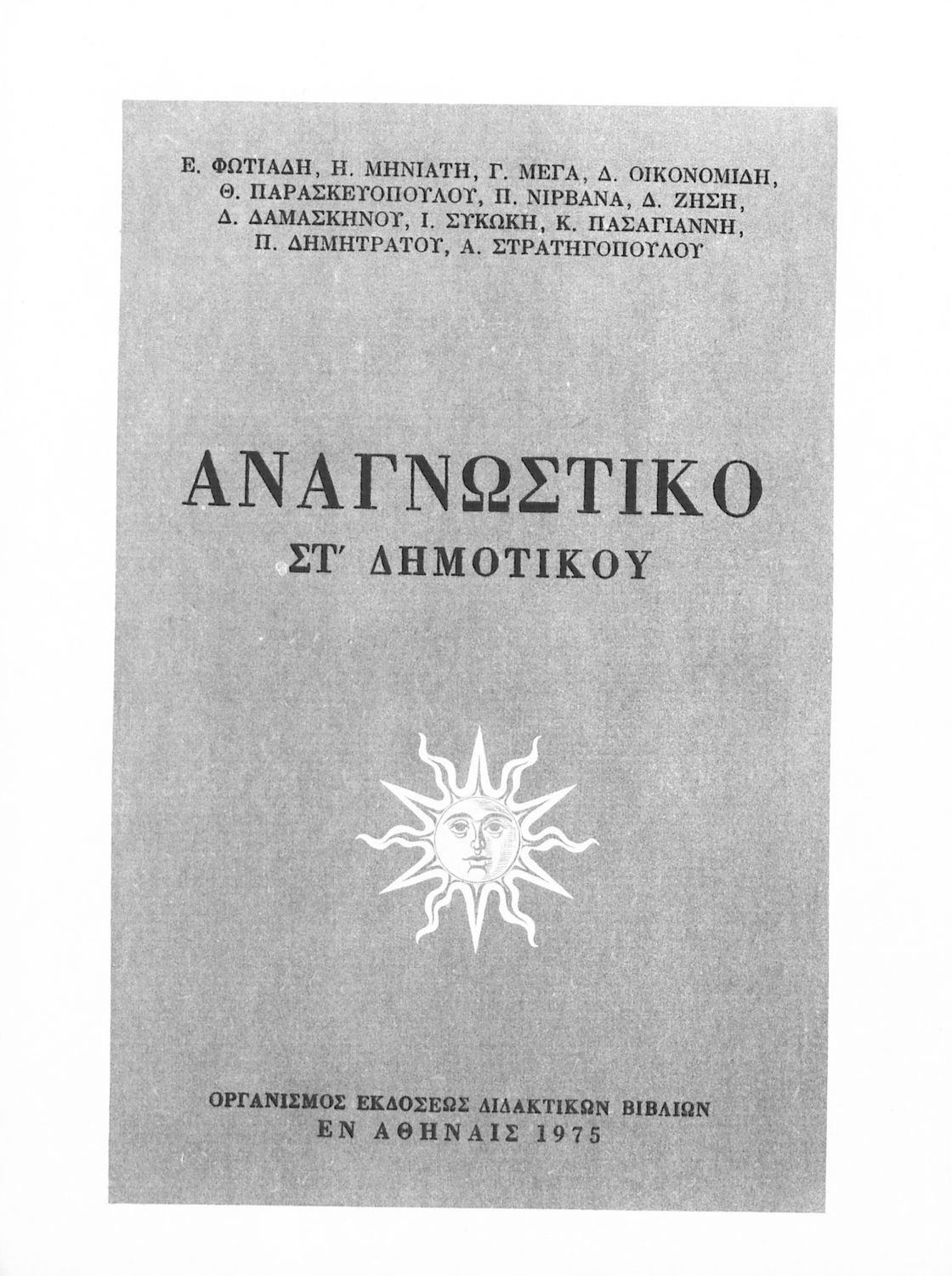 Εκδότης: Οργανισμός Εκδόσεως Διδακτικών Βιβλίων Έτος έκδοσης: 1975 Τόπος έκδοσης: Αθήνα Έκδοση: 15η Υπουργική απόφαση / Σύμβαση: 2585/14-5-1975 Έτος έγκρισης: 1975 |