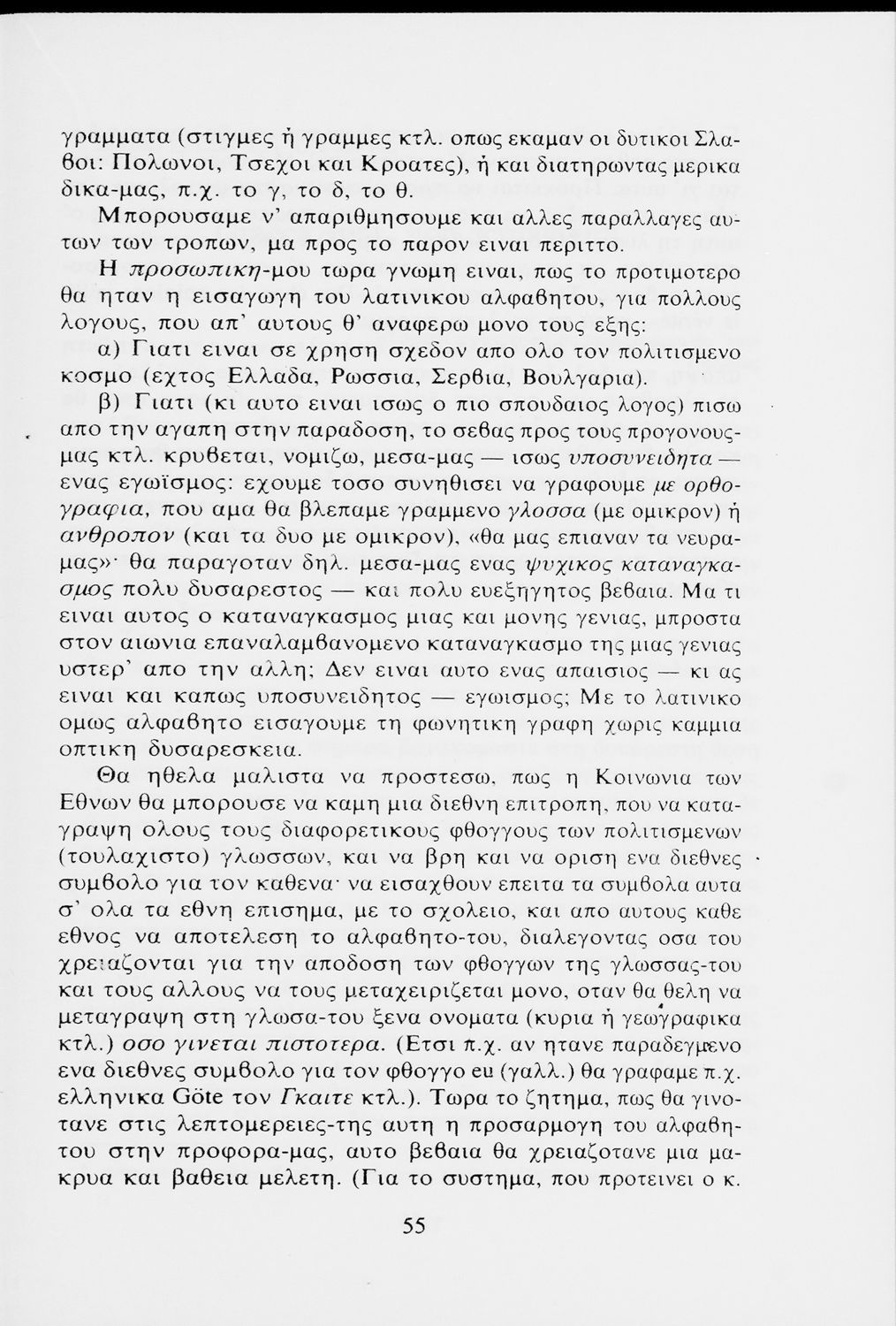 Επιστημονικό σύγγραμμα που θίγει τις ιδιαιτερότητες της φωνητικής γραφής σε συνδυασμό με τη χρηστική αξία του λατινικού αλφάβητου.