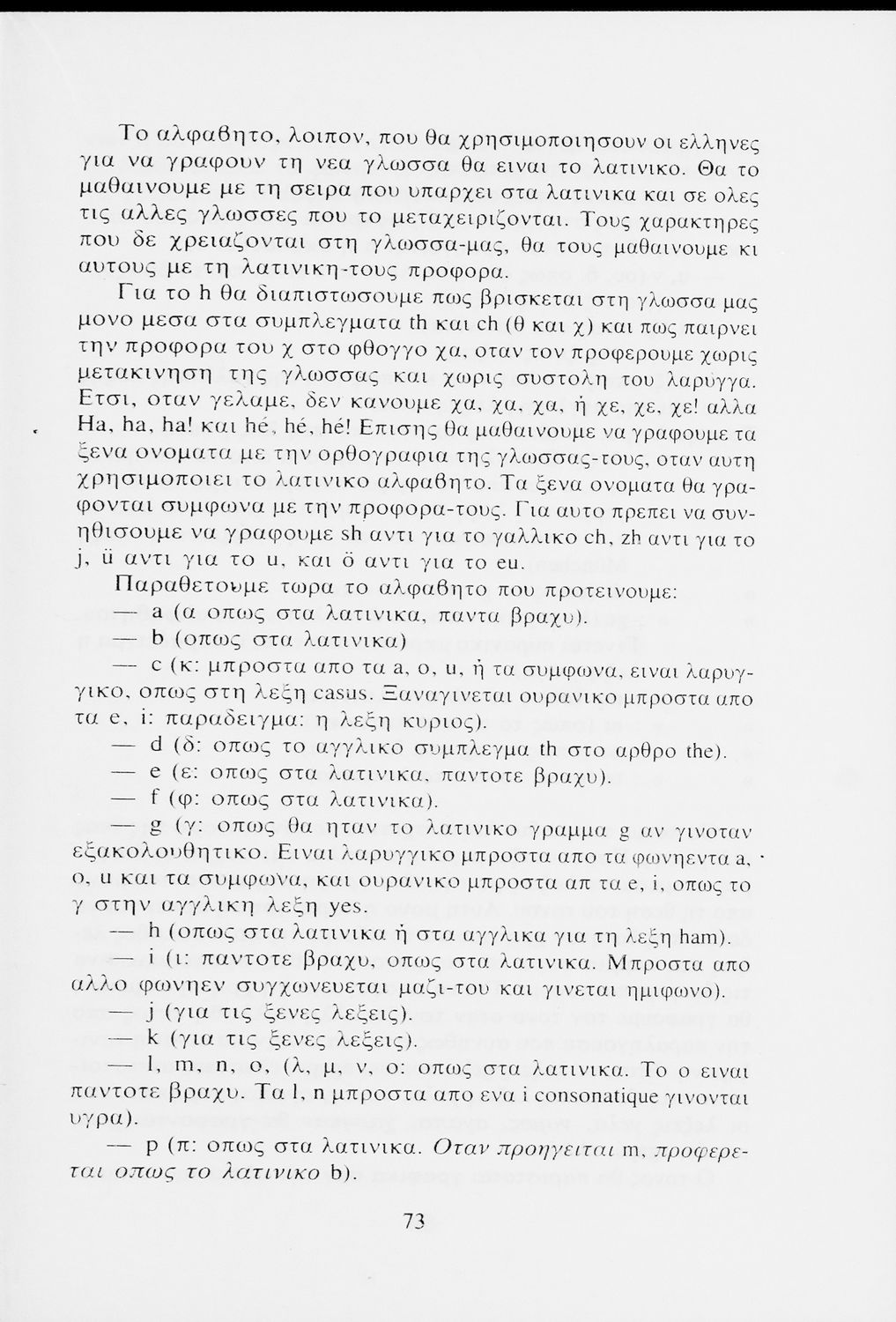 Επιστημονικό σύγγραμμα που θίγει τις ιδιαιτερότητες της φωνητικής γραφής σε συνδυασμό με τη χρηστική αξία του λατινικού αλφάβητου.