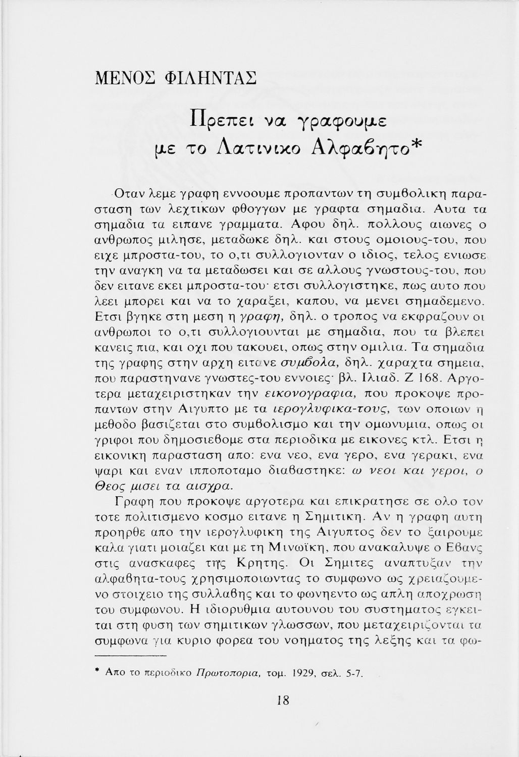 Επιστημονικό σύγγραμμα που θίγει τις ιδιαιτερότητες της φωνητικής γραφής σε συνδυασμό με τη χρηστική αξία του λατινικού αλφάβητου.