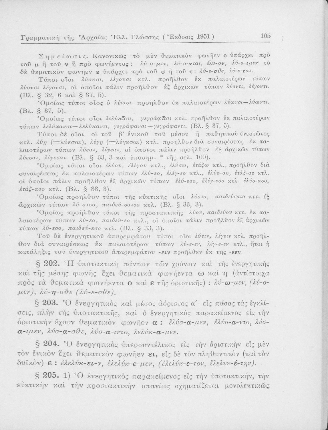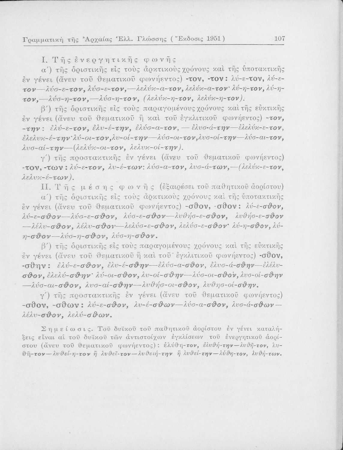 Σχολικό εγχειρίδιο Αρχαίων Ελληνικών Γυμνασίου που περιέχει τους κανόνες γραμματικής και είναι χωρισμένο σε φθογγολογικό, τυπολογικό και ετυμολογικό μέρος. Περιέχει και κατάλογο ανωμάλων ρημάτων.