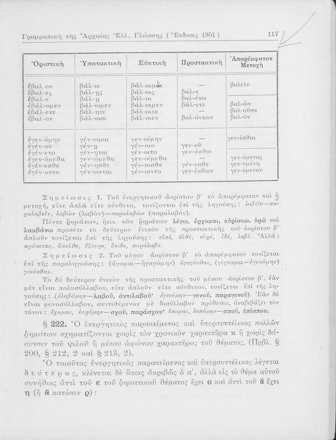 520 ## _aΣχολικό εγχειρίδιο Αρχαίων Ελληνικών Γυμνασίου που περιέχει τους κανόνες γραμματικής και είναι χωρισμένο σε φθογγολογικό, τυπολογικό και ετυμολογικό μέρος. Περιέχει και κατάλογο ανωμάλων ρημάτων.