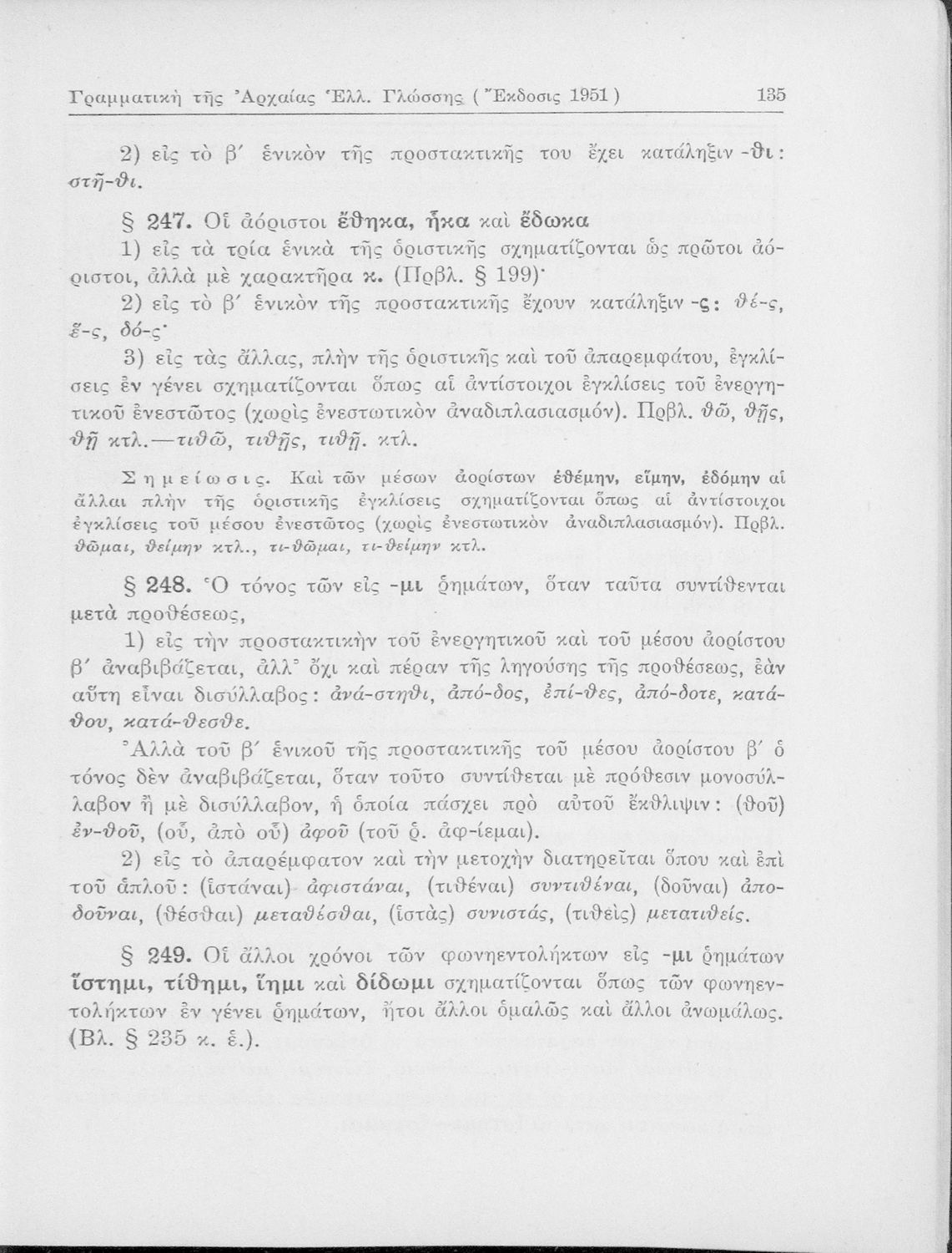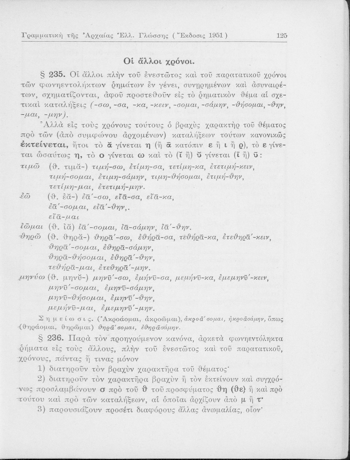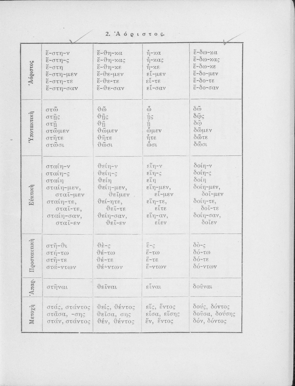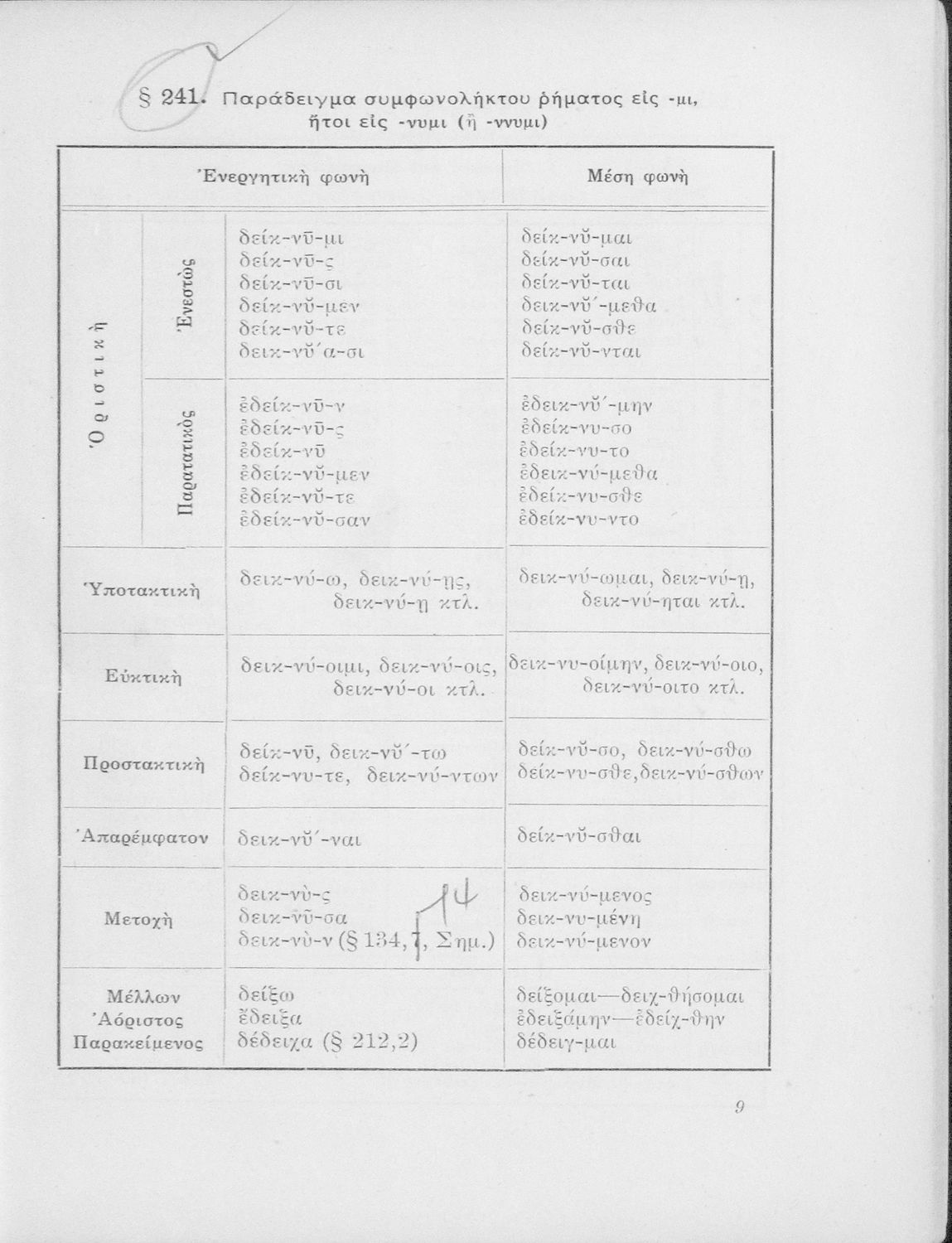 Σχολικό εγχειρίδιο Αρχαίων Ελληνικών Γυμνασίου που περιέχει τους κανόνες γραμματικής και είναι χωρισμένο σε φθογγολογικό, τυπολογικό και ετυμολογικό μέρος. Περιέχει και κατάλογο ανωμάλων ρημάτων.