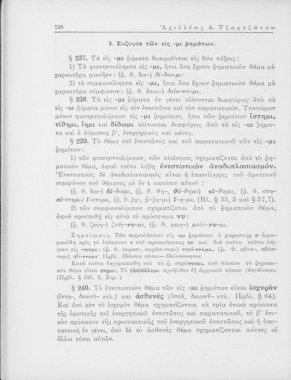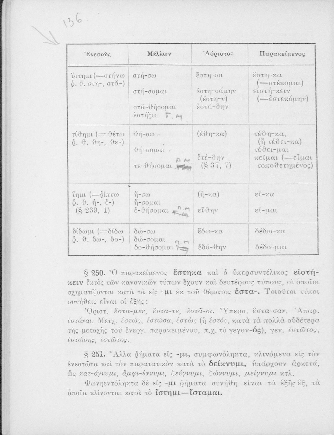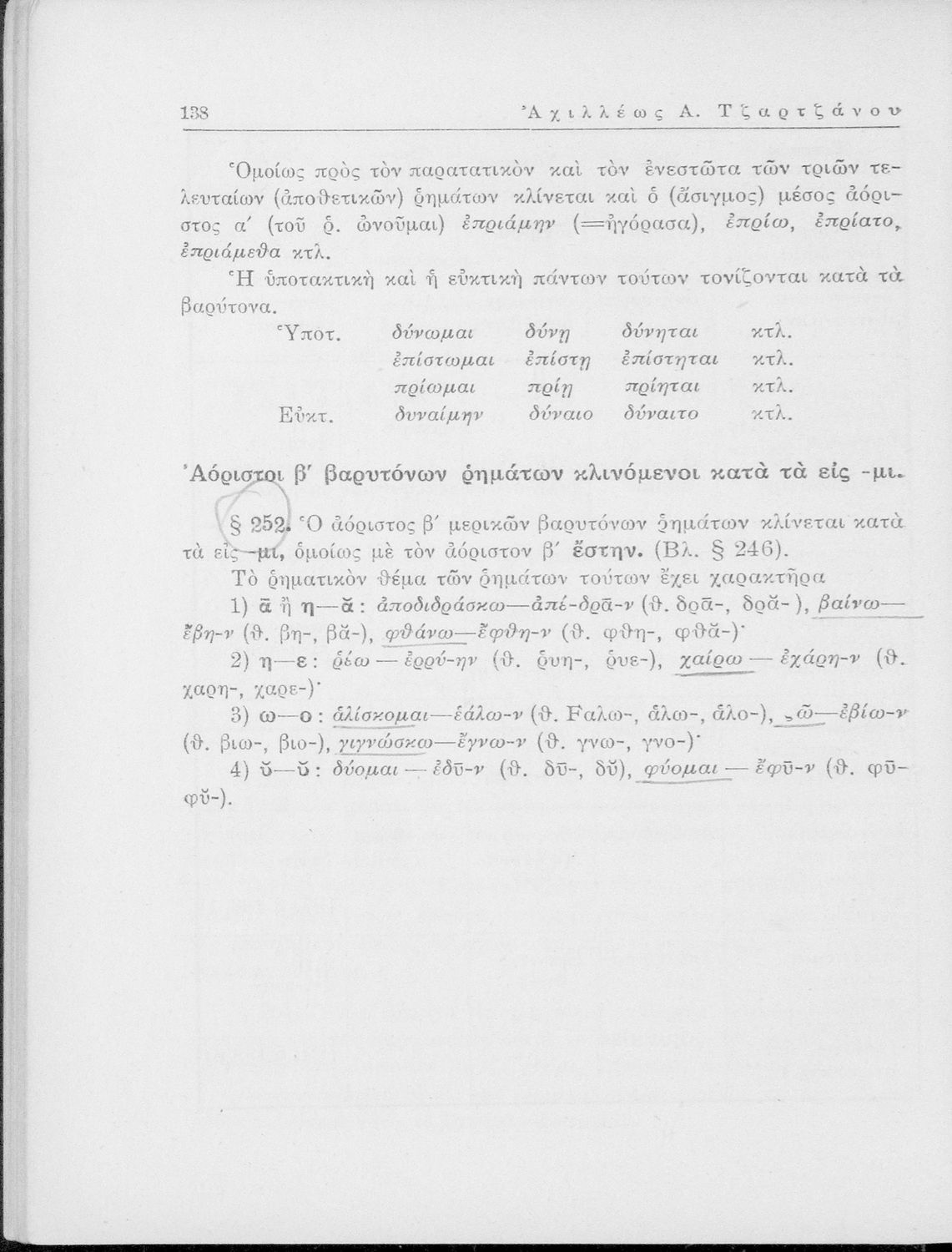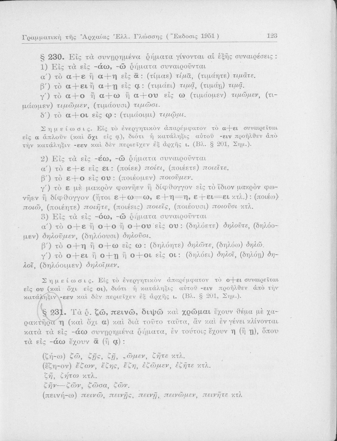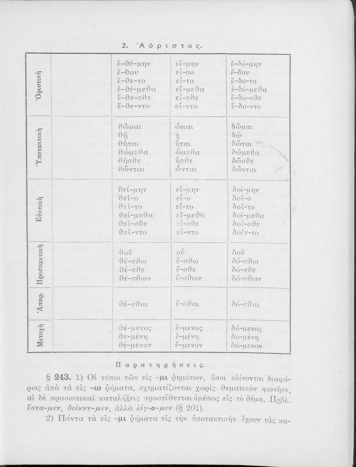 Σχολικό εγχειρίδιο Αρχαίων Ελληνικών Γυμνασίου που περιέχει τους κανόνες γραμματικής και είναι χωρισμένο σε φθογγολογικό, τυπολογικό και ετυμολογικό μέρος. Περιέχει και κατάλογο ανωμάλων ρημάτων.