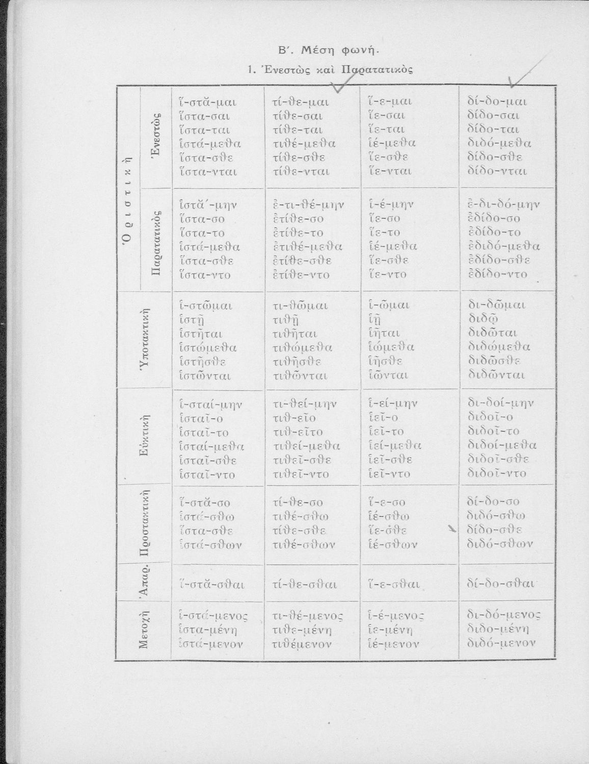 Σχολικό εγχειρίδιο Αρχαίων Ελληνικών Γυμνασίου που περιλαμβάνει τους κανόνες γραμματικής και είναι χωρισμένη στο φθογγολογικό, το τυπολογικό και ετυμολογικό μέρος.