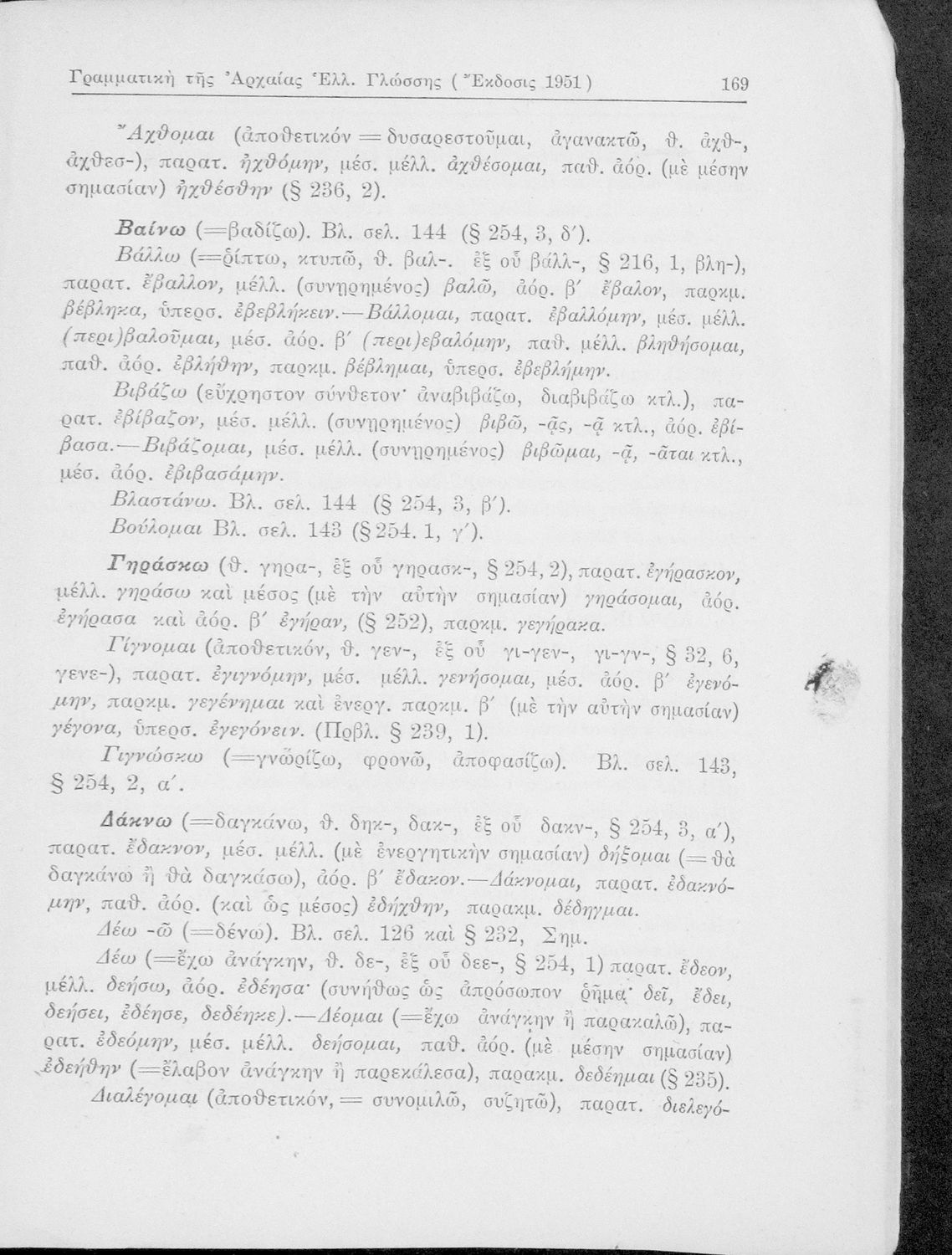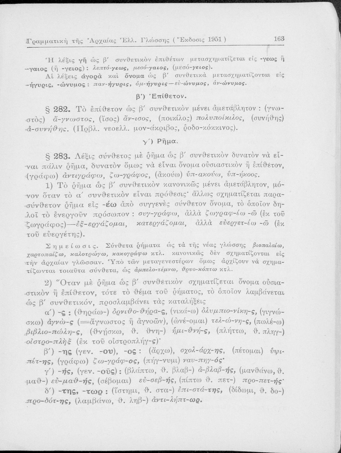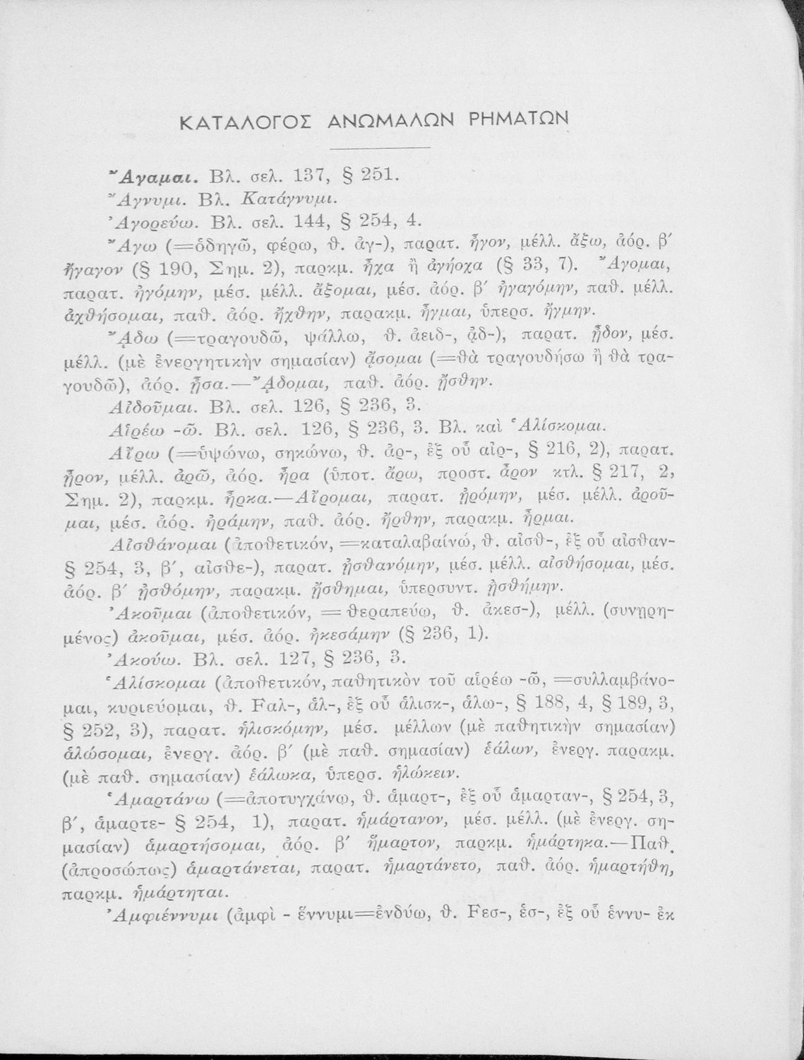 Σχολικό εγχειρίδιο Αρχαίων Ελληνικών Γυμνασίου που περιέχει τους κανόνες γραμματικής και είναι χωρισμένο σε φθογγολογικό, τυπολογικό και ετυμολογικό μέρος. Περιέχει και κατάλογο ανωμάλων ρημάτων.