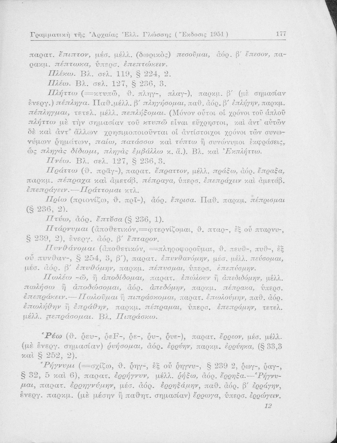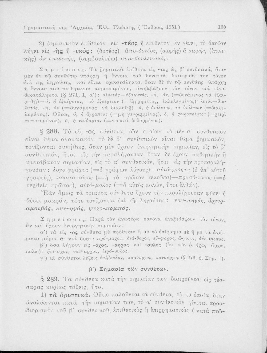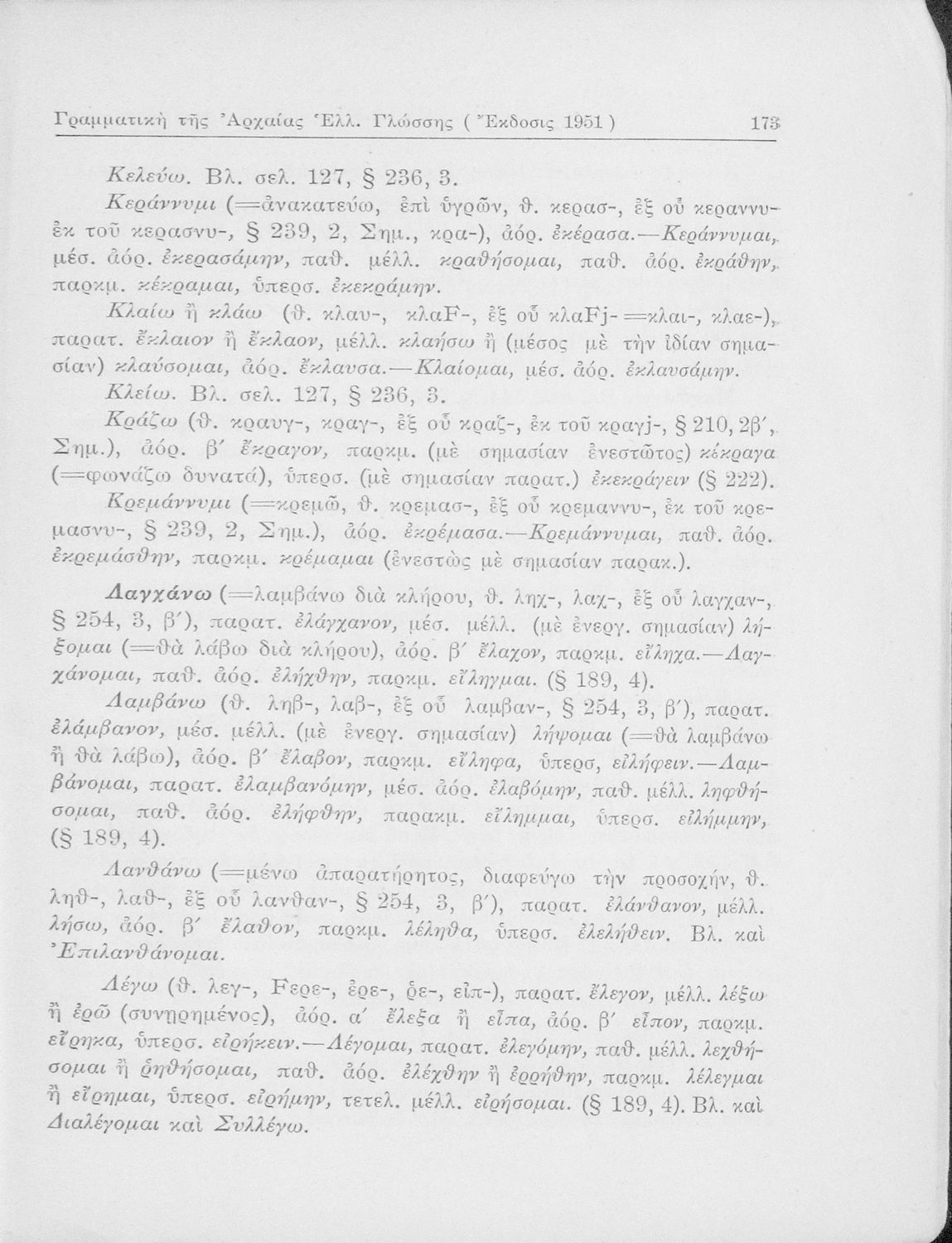 Σχολικό εγχειρίδιο Αρχαίων Ελληνικών Γυμνασίου που περιέχει τους κανόνες γραμματικής και είναι χωρισμένο σε φθογγολογικό, τυπολογικό και ετυμολογικό μέρος. Περιέχει και κατάλογο ανωμάλων ρημάτων.