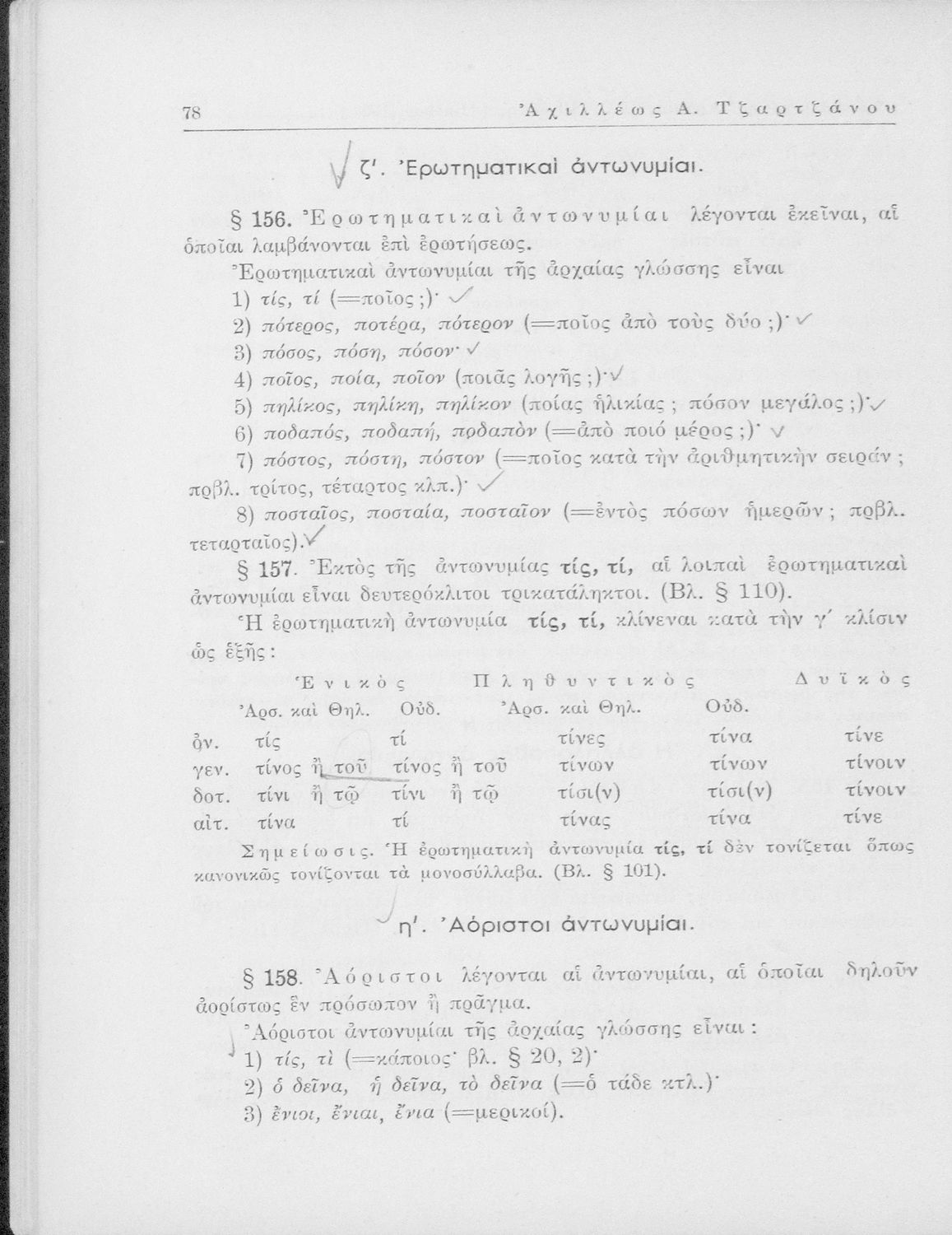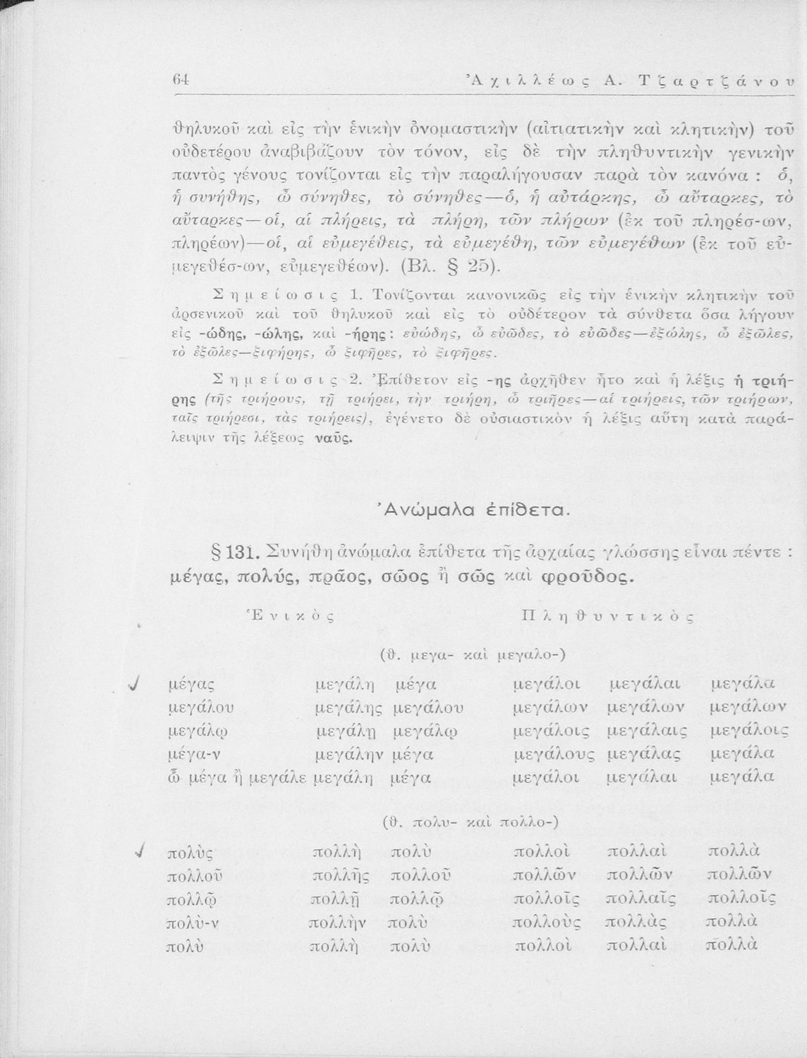 520 ## _aΣχολικό εγχειρίδιο Αρχαίων Ελληνικών Γυμνασίου που περιέχει τους κανόνες γραμματικής και είναι χωρισμένο σε φθογγολογικό, τυπολογικό και ετυμολογικό μέρος. Περιέχει και κατάλογο ανωμάλων ρημάτων.