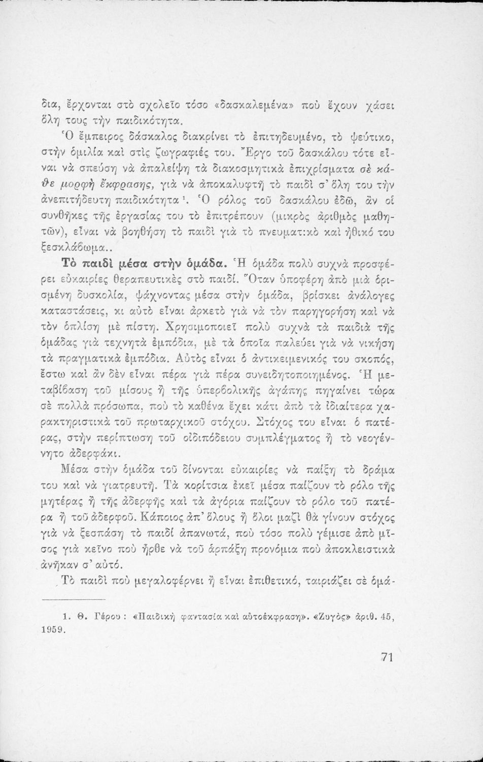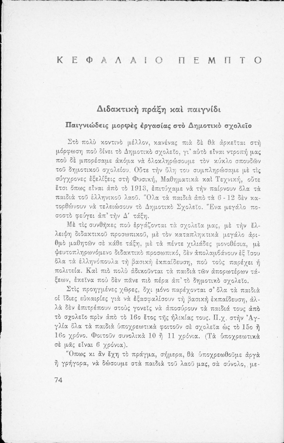 Παιδαγωγικό βοήθημα που αναλύει τη σημασία του παιχνιδιού στην παιδαγωγική και διδακτική διαδικασία στα παιδιά του Δημοτικού. Φέρει ιδιόχειρη αφιέρωση.