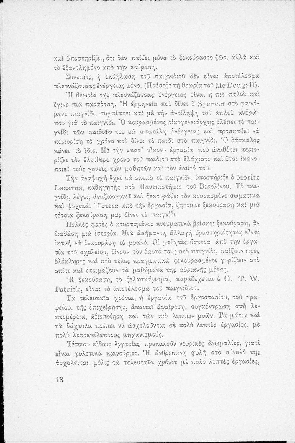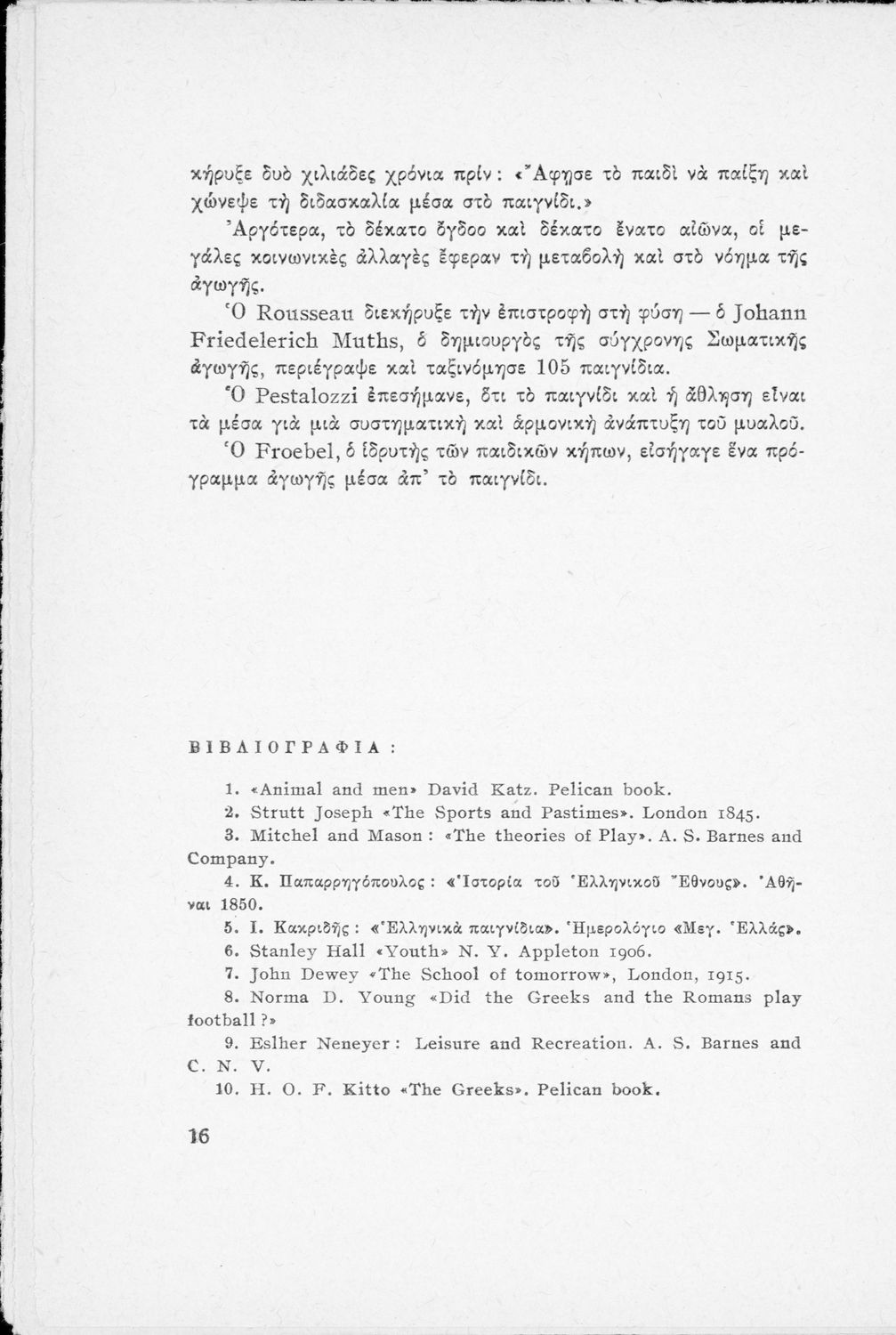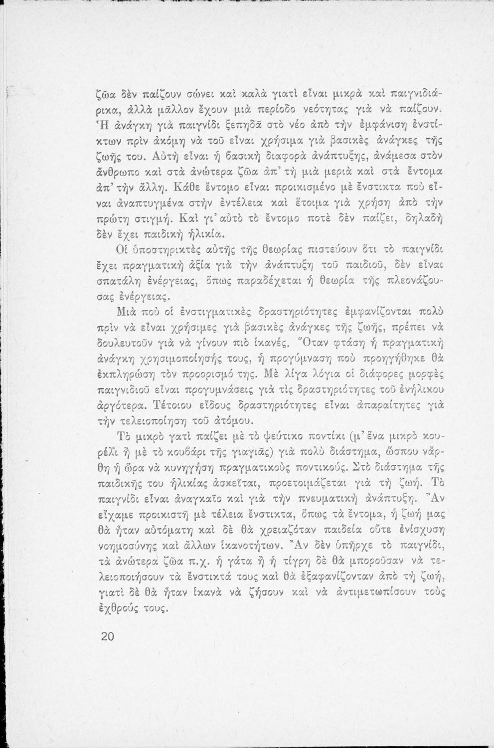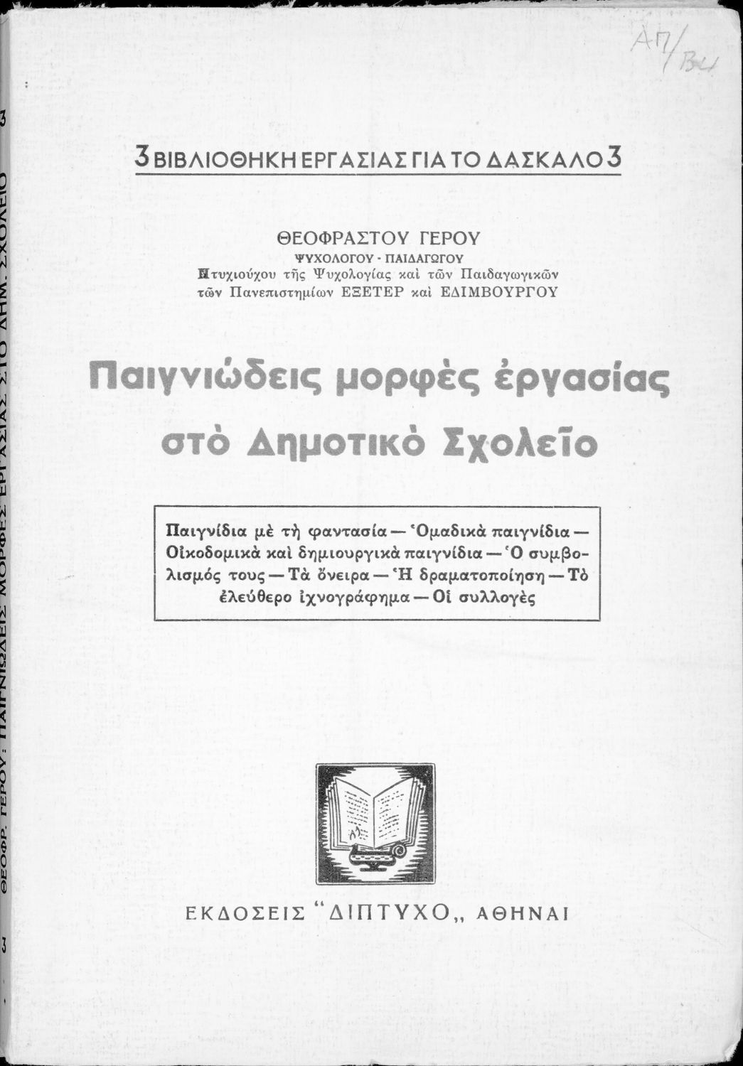 Παιδαγωγικό βοήθημα που αναλύει τη σημασία του παιχνιδιού στην παιδαγωγική και διδακτική διαδικασία στα παιδιά του Δημοτικού. Φέρει ιδιόχειρη αφιέρωση.